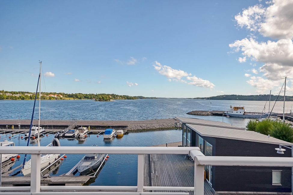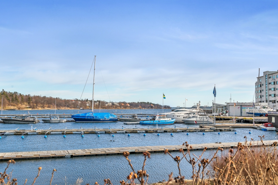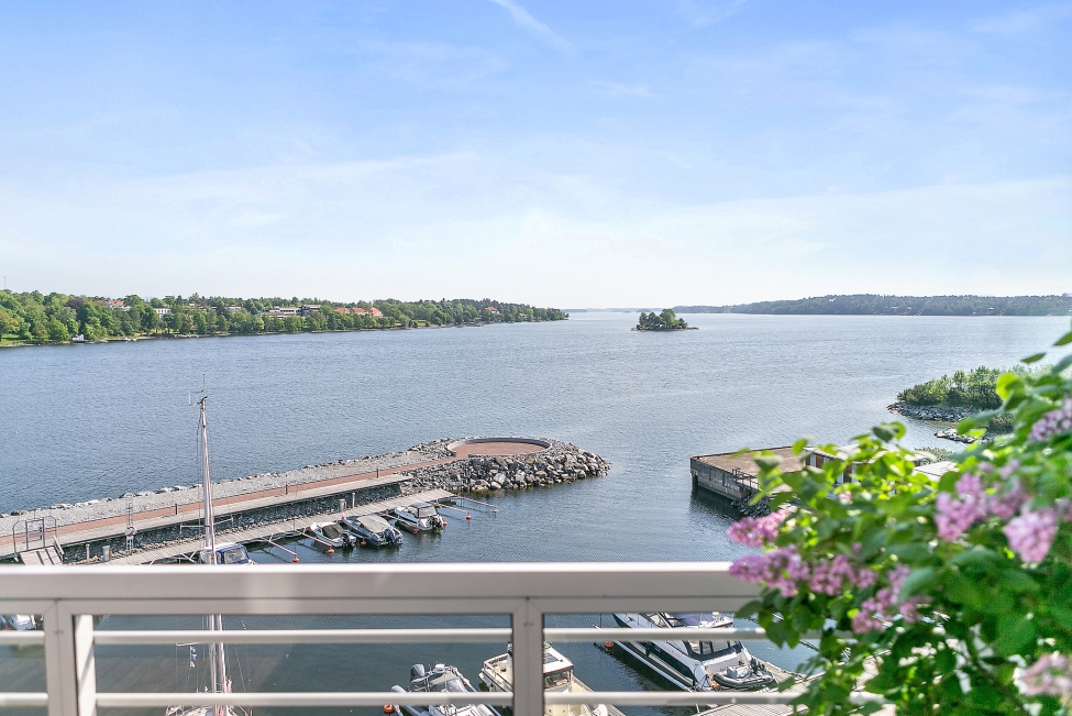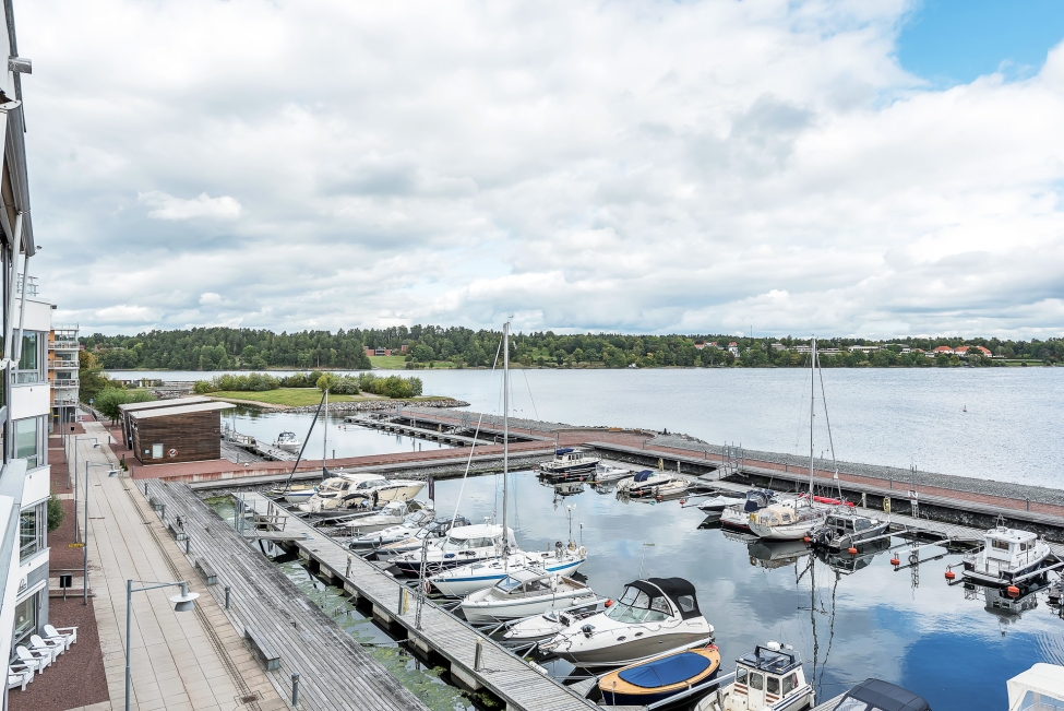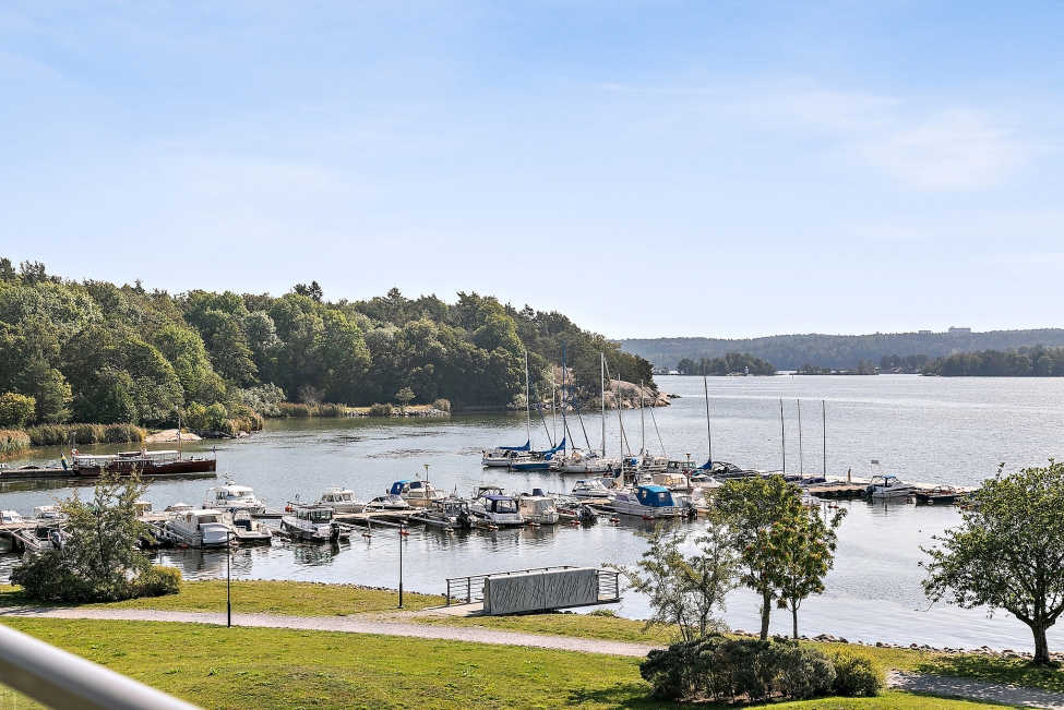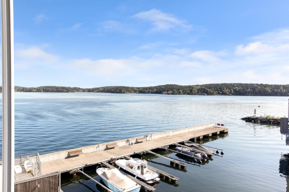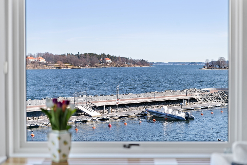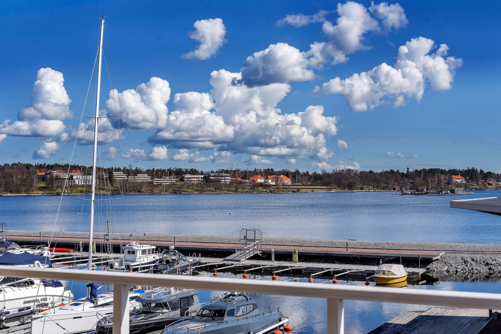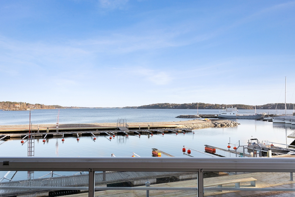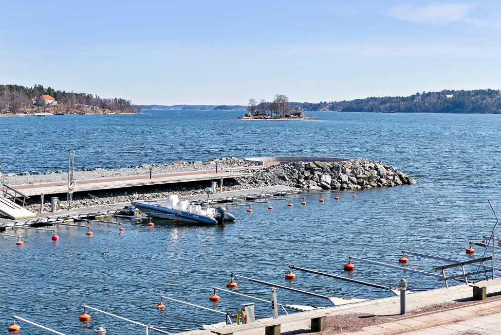 Synnerligen tilltalande lägenhet belägen högt upp i fastighet med bästa tänkbara utsikt över inloppet samt Kyrkviken. Påkostade och smakfulla materialval. Generösa och väldisponerade öppna ytor, stora fönsterpartier samt två härliga balkonger med utsikt över vattnet och den vackra omgivningen. Mycket eftersökt läge på Skepparkroken i Gåshaga Pirar.