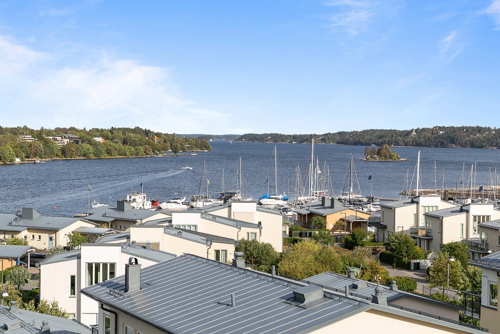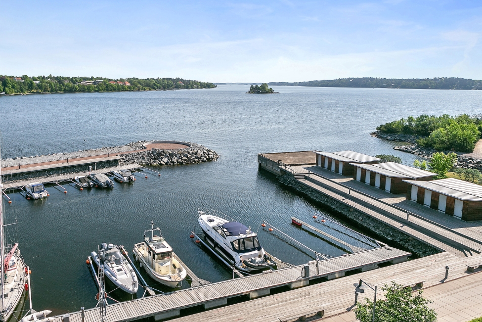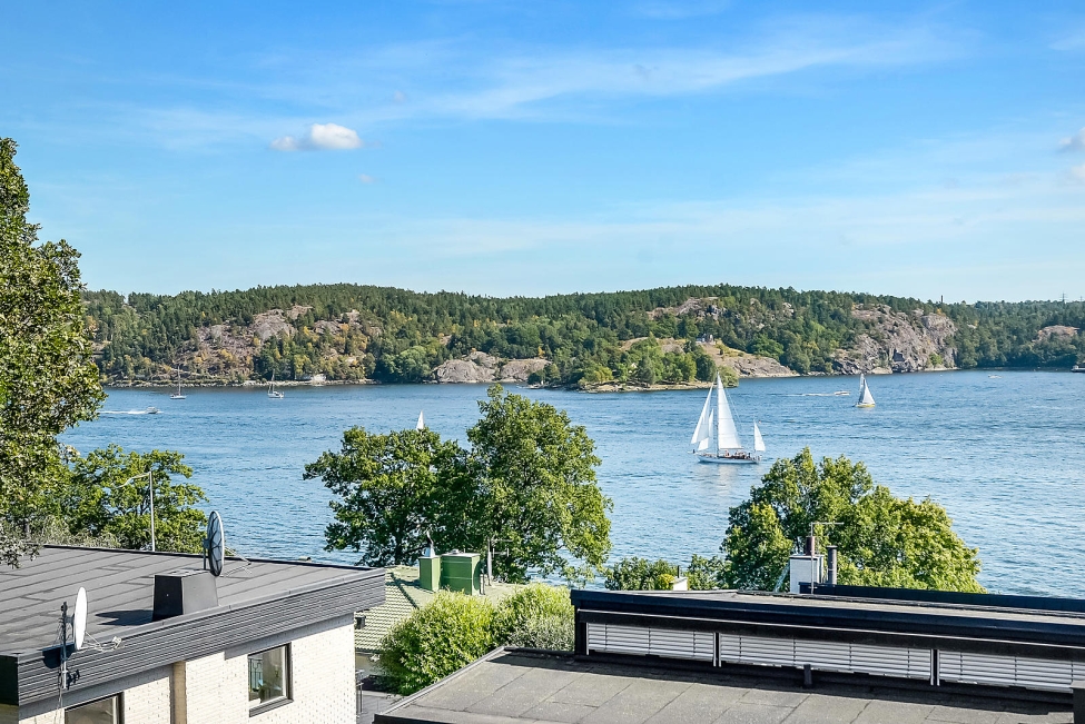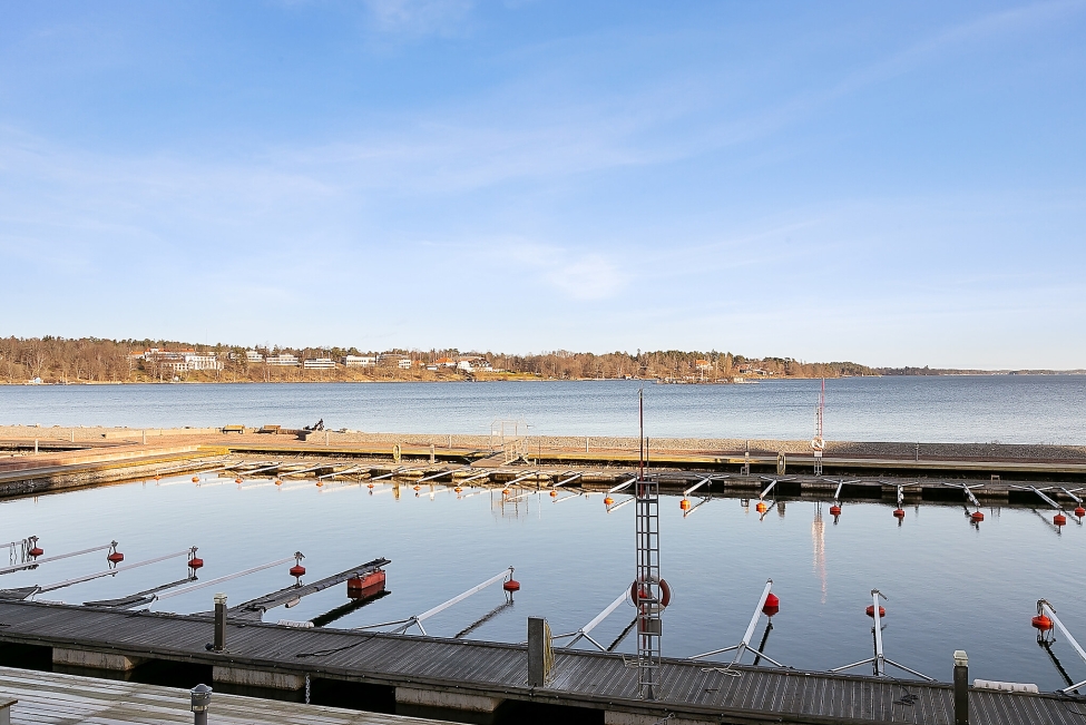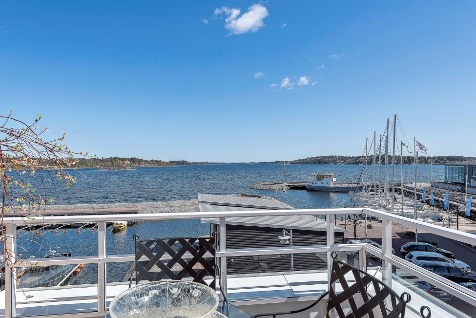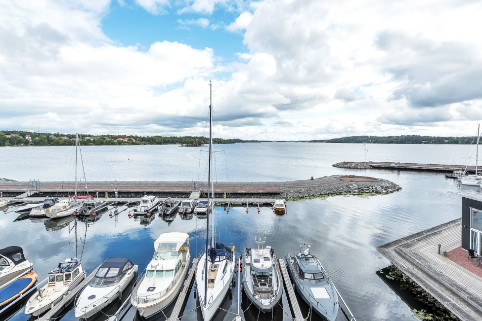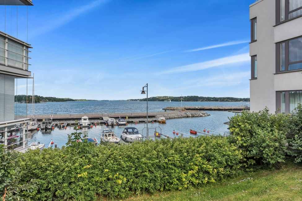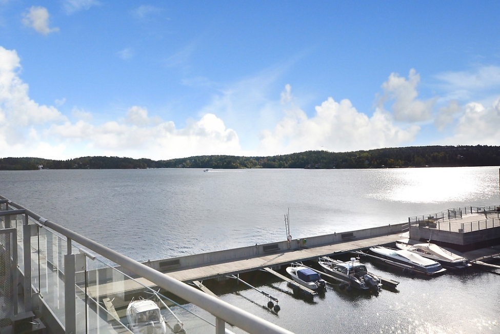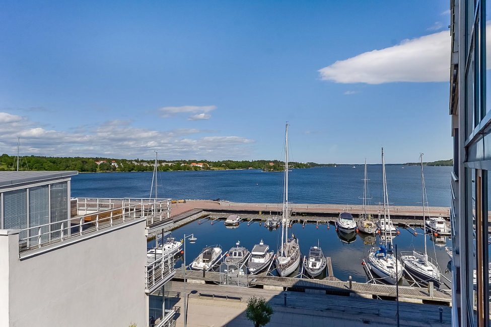 Synnerligen tilltalande lägenhet belägen högt upp i fastighet med bästa tänkbara utsikt över inloppet samt Kyrkviken. Påkostade och smakfulla materialval. Generösa och väldisponerade öppna ytor, stora fönsterpartier samt två härliga balkonger med utsikt över vattnet och den vackra omgivningen. Mycket eftersökt läge på Skepparkroken i Gåshaga Pirar.