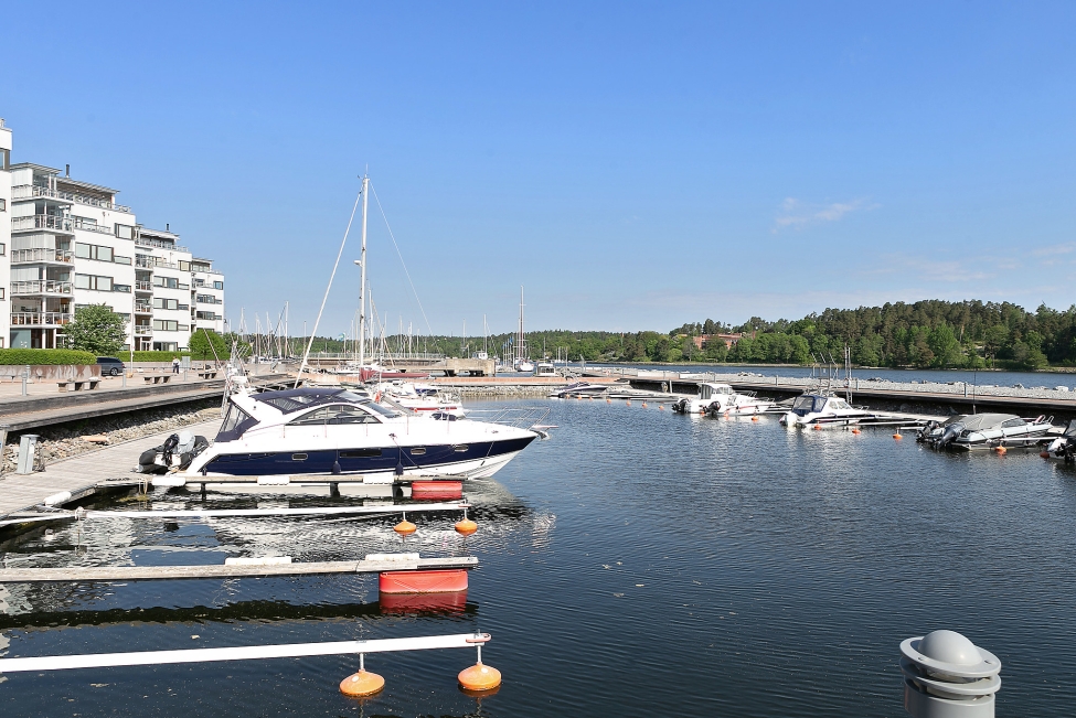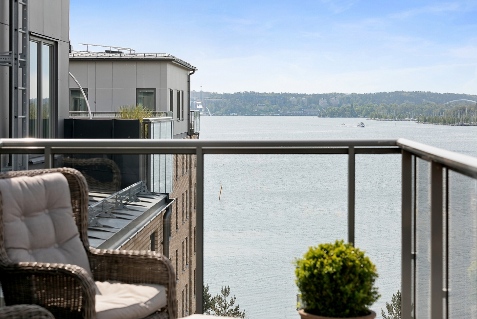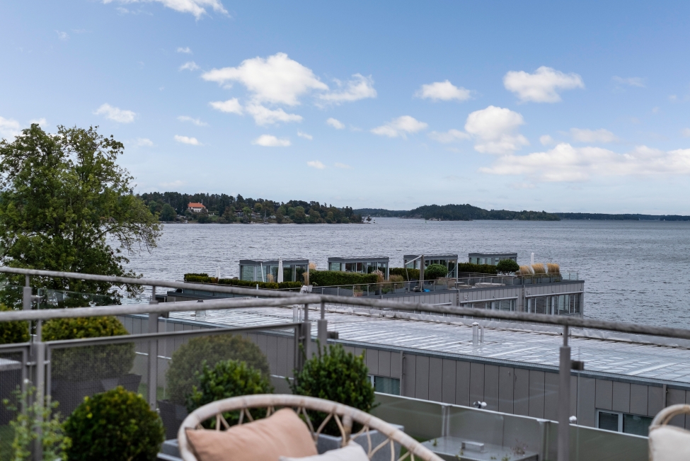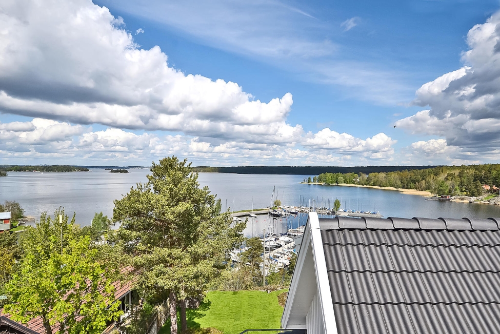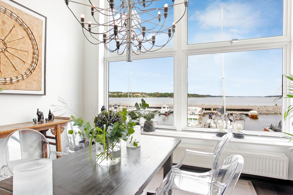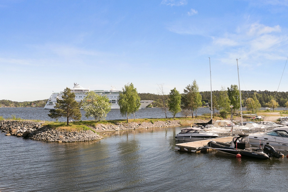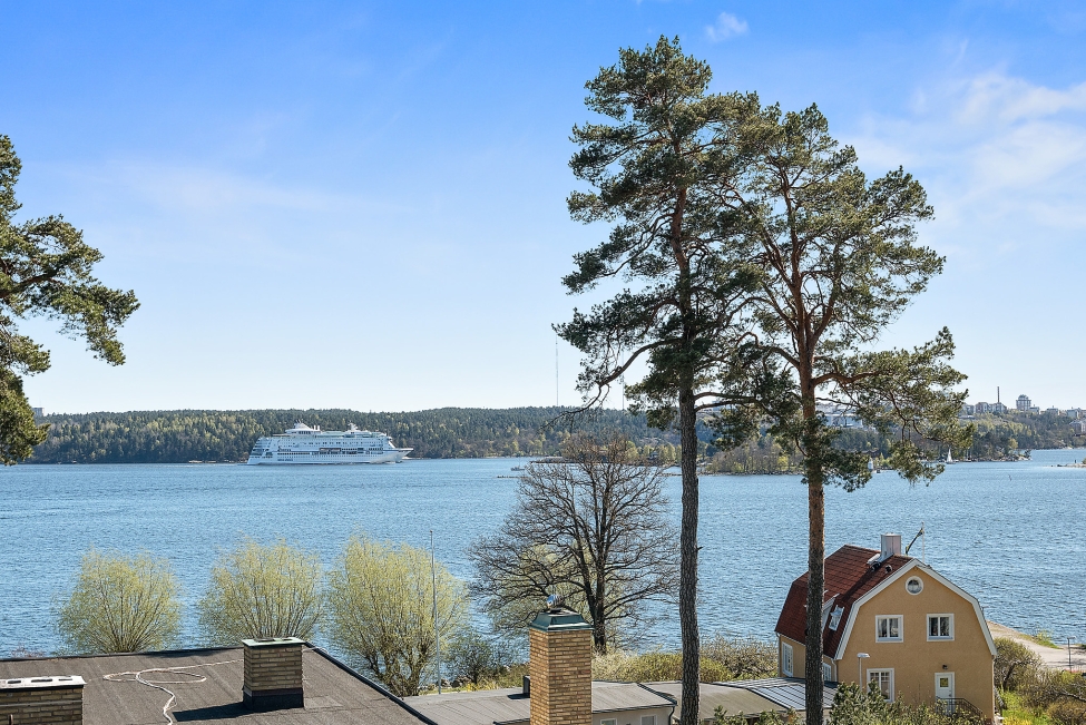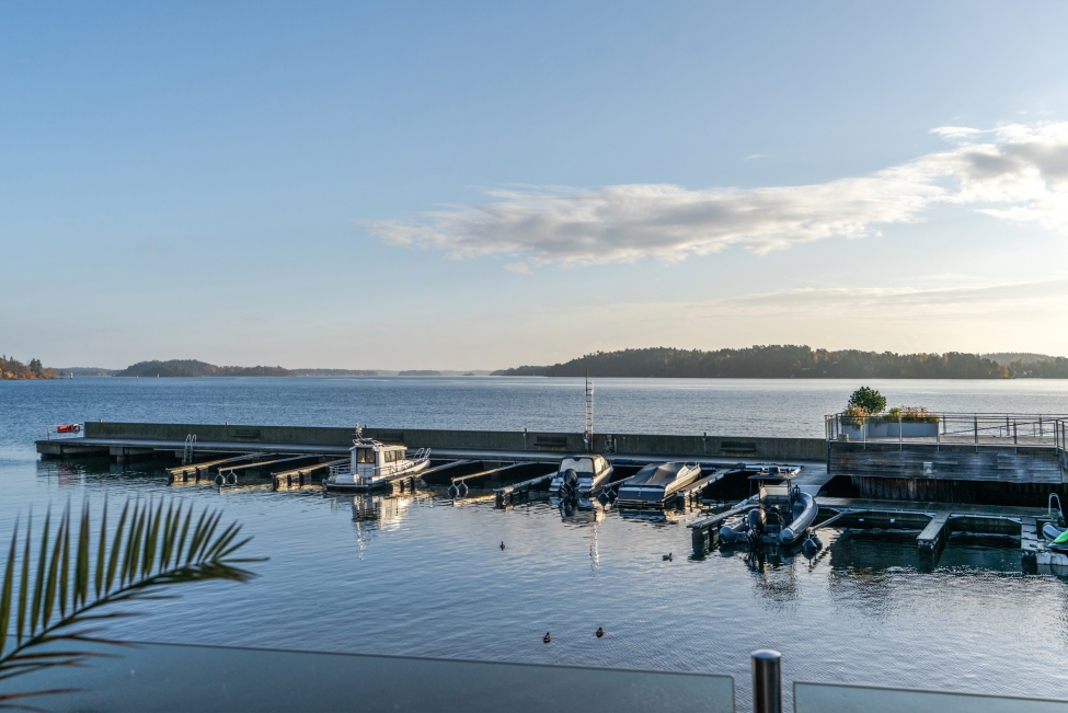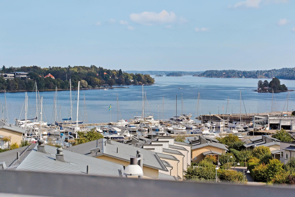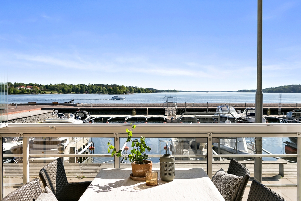 Synnerligen tilltalande lägenhet belägen högt upp i fastighet med bästa tänkbara utsikt över inloppet samt Kyrkviken. Påkostade och smakfulla materialval. Generösa och väldisponerade öppna ytor, stora fönsterpartier samt två härliga balkonger med utsikt över vattnet och den vackra omgivningen. Mycket eftersökt läge på Skepparkroken i Gåshaga Pirar.