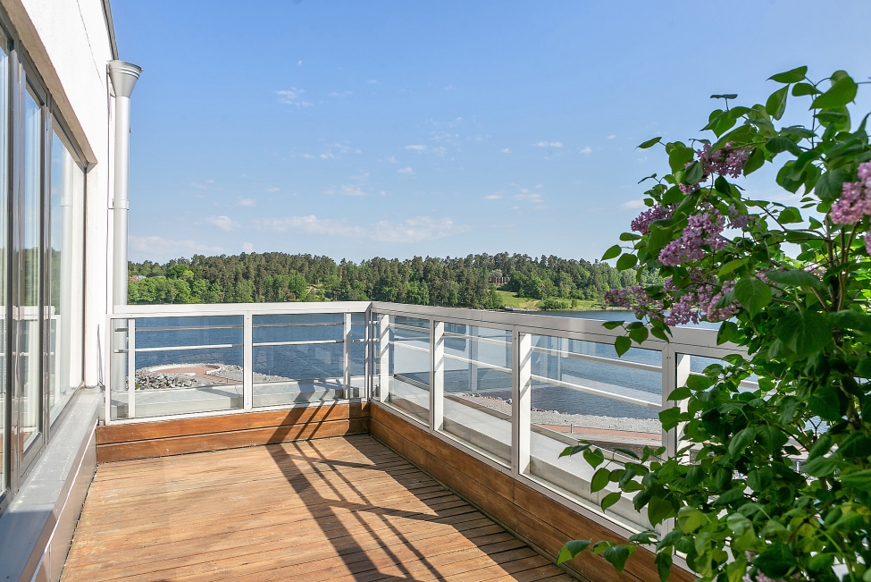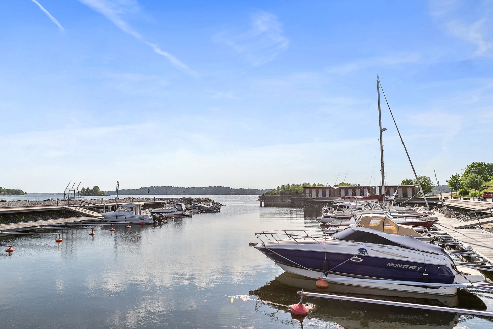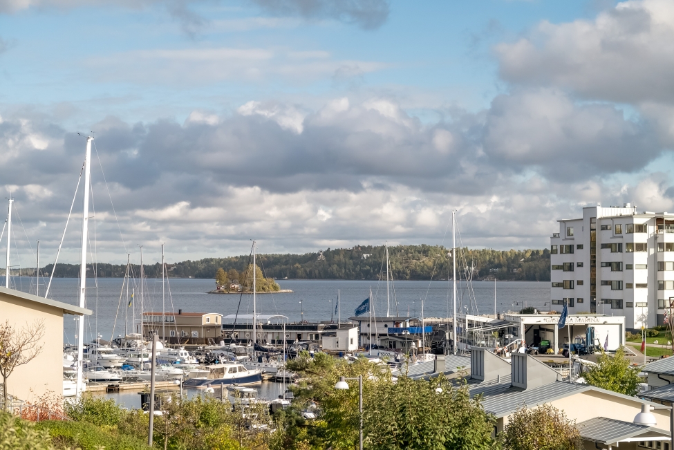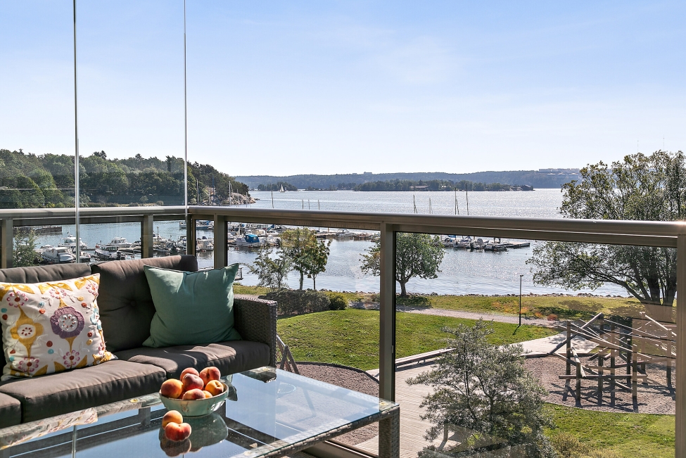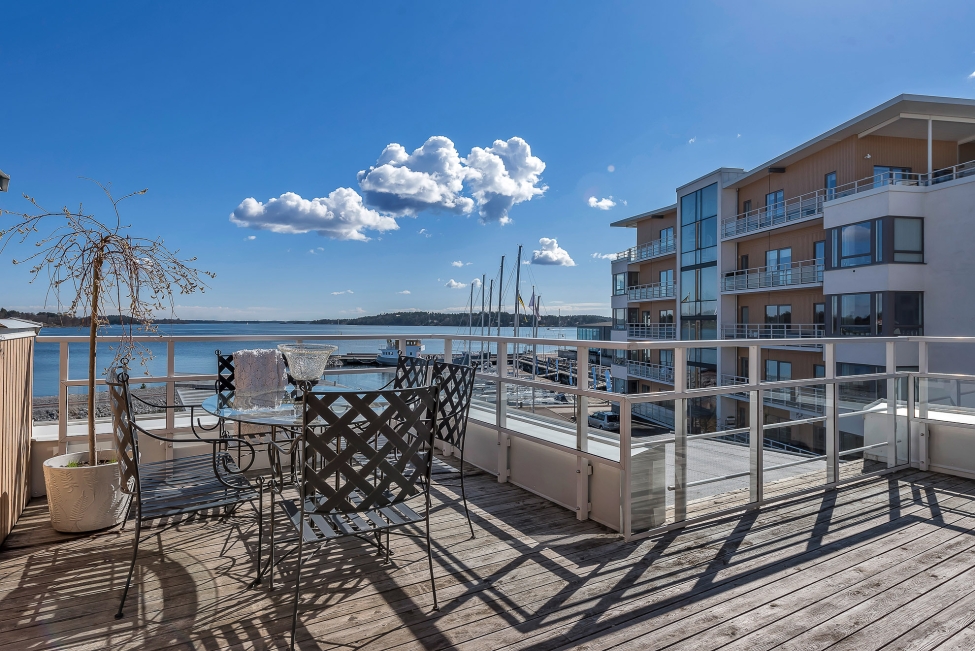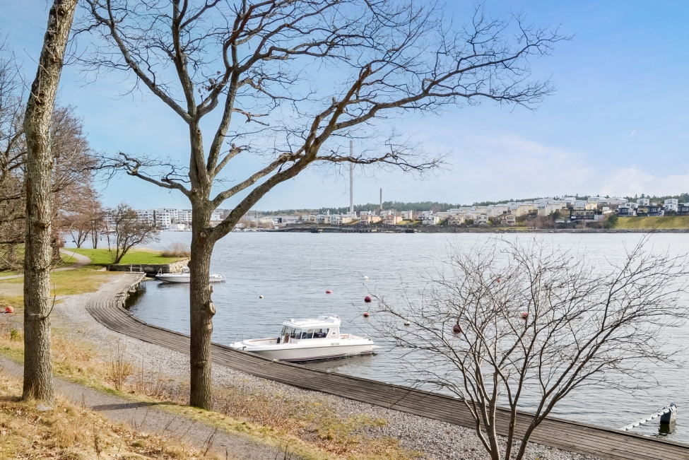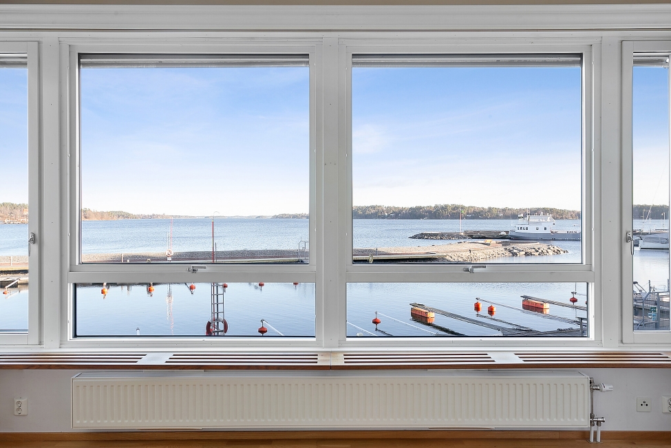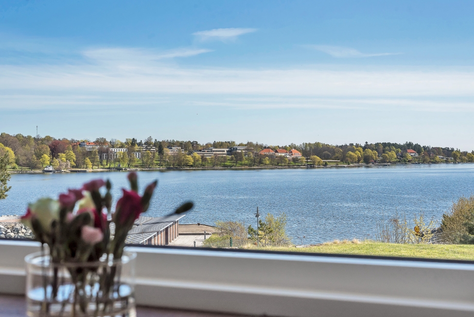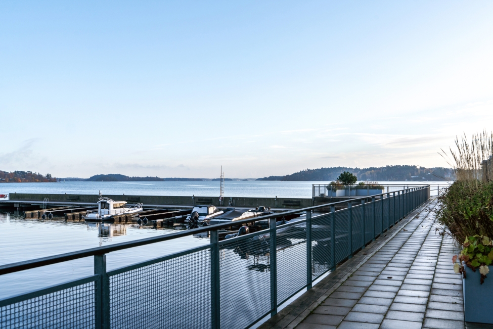 Synnerligen tilltalande lägenhet belägen högt upp i fastighet med bästa tänkbara utsikt över inloppet samt Kyrkviken. Påkostade och smakfulla materialval. Generösa och väldisponerade öppna ytor, stora fönsterpartier samt två härliga balkonger med utsikt över vattnet och den vackra omgivningen. Mycket eftersökt läge på Skepparkroken i Gåshaga Pirar.