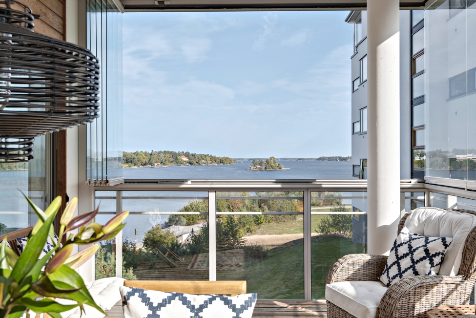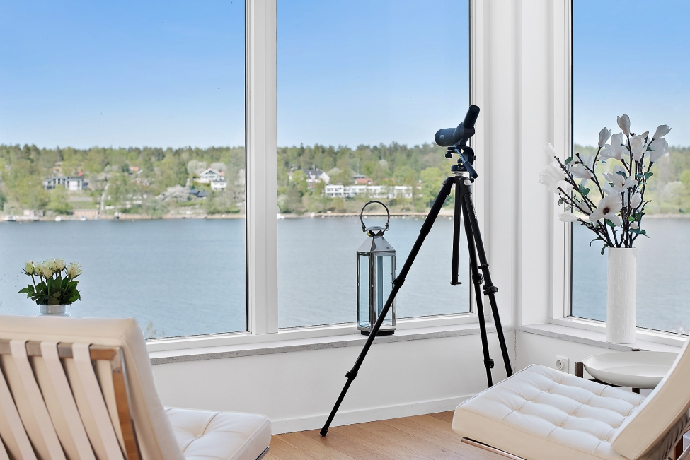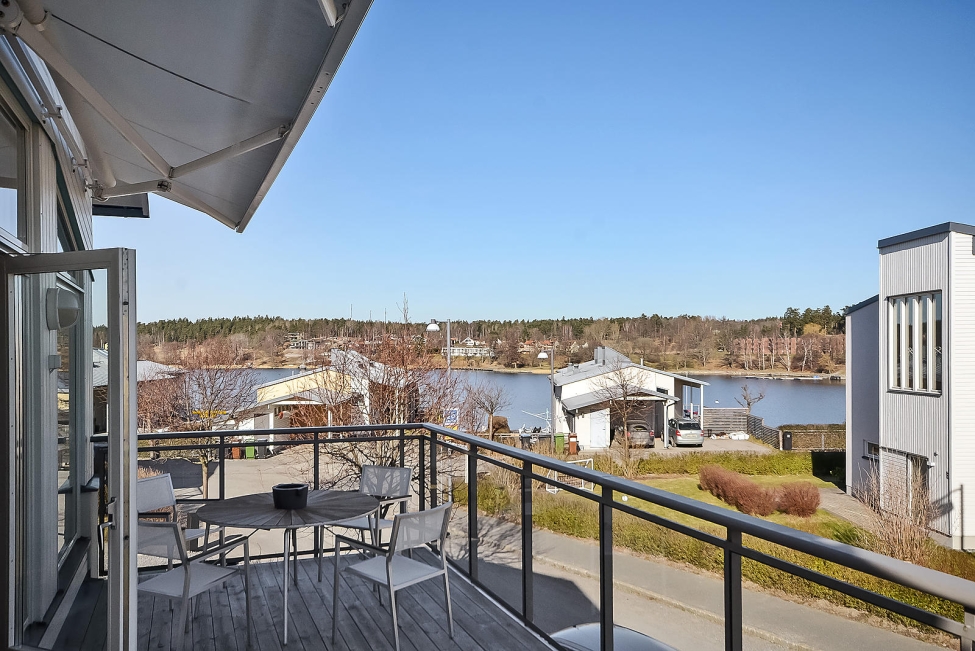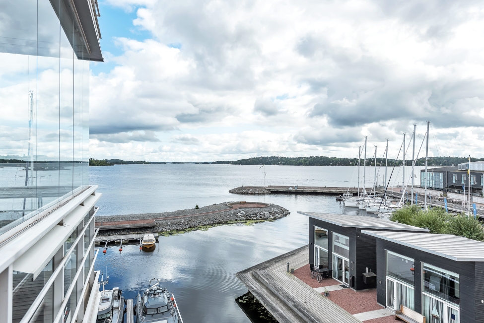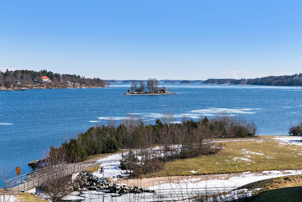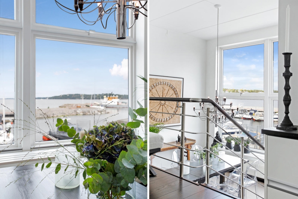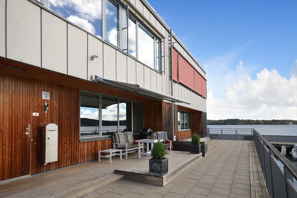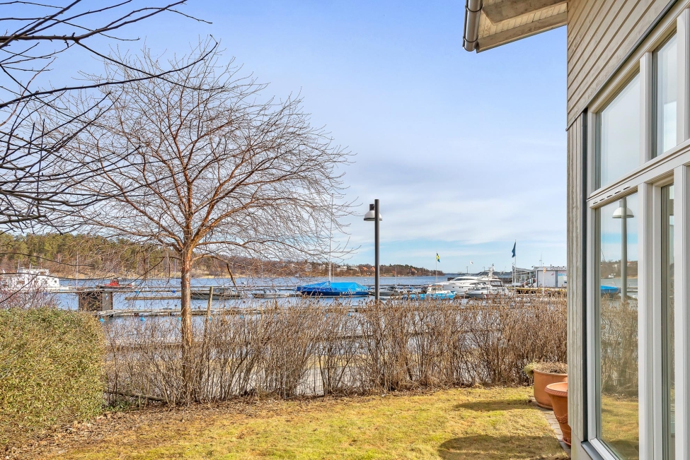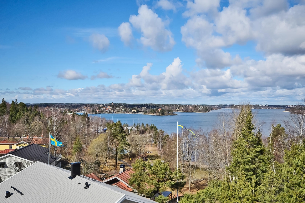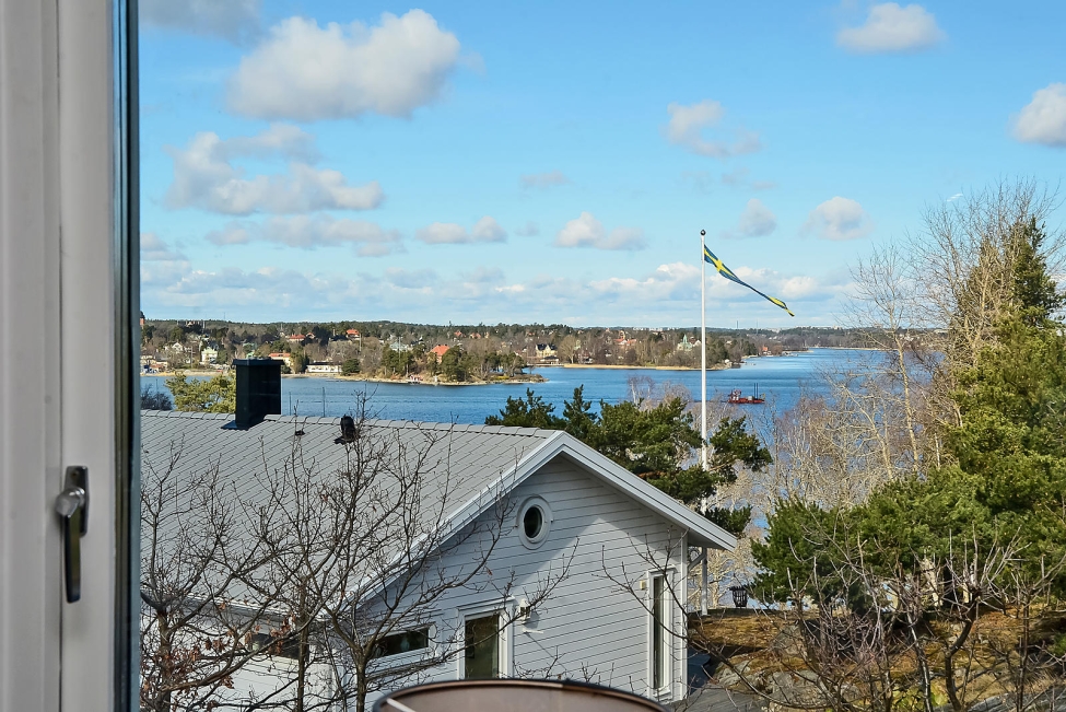 Synnerligen tilltalande lägenhet belägen högt upp i fastighet med bästa tänkbara utsikt över inloppet samt Kyrkviken. Påkostade och smakfulla materialval. Generösa och väldisponerade öppna ytor, stora fönsterpartier samt två härliga balkonger med utsikt över vattnet och den vackra omgivningen. Mycket eftersökt läge på Skepparkroken i Gåshaga Pirar.