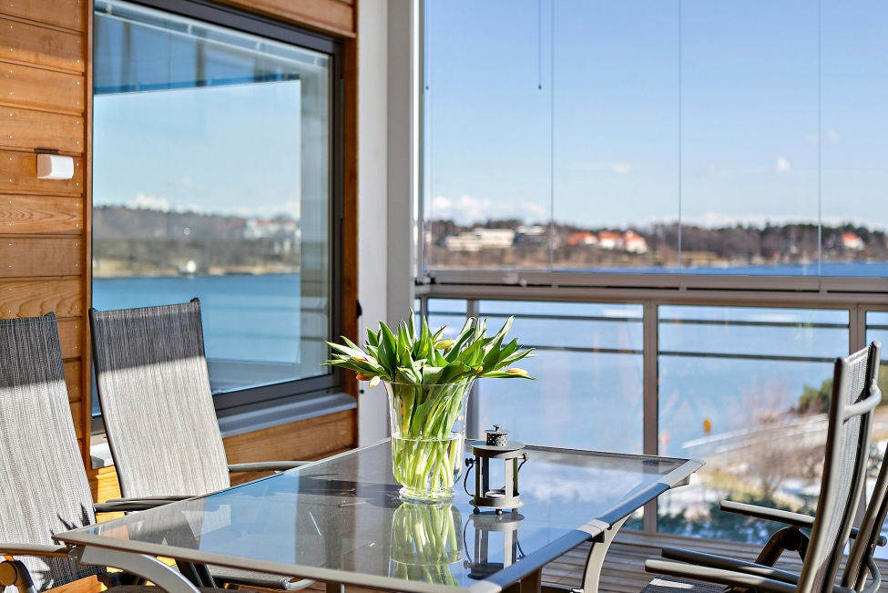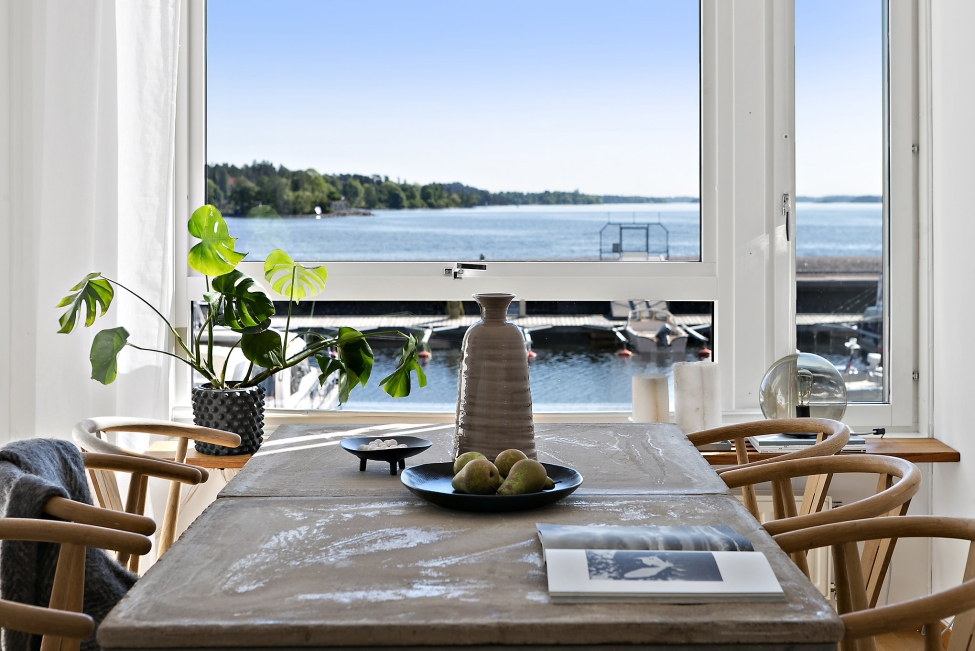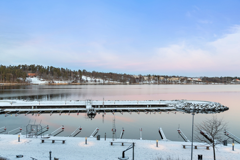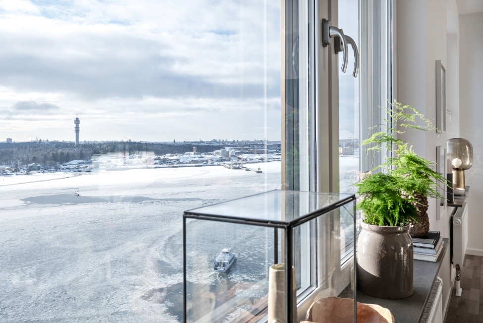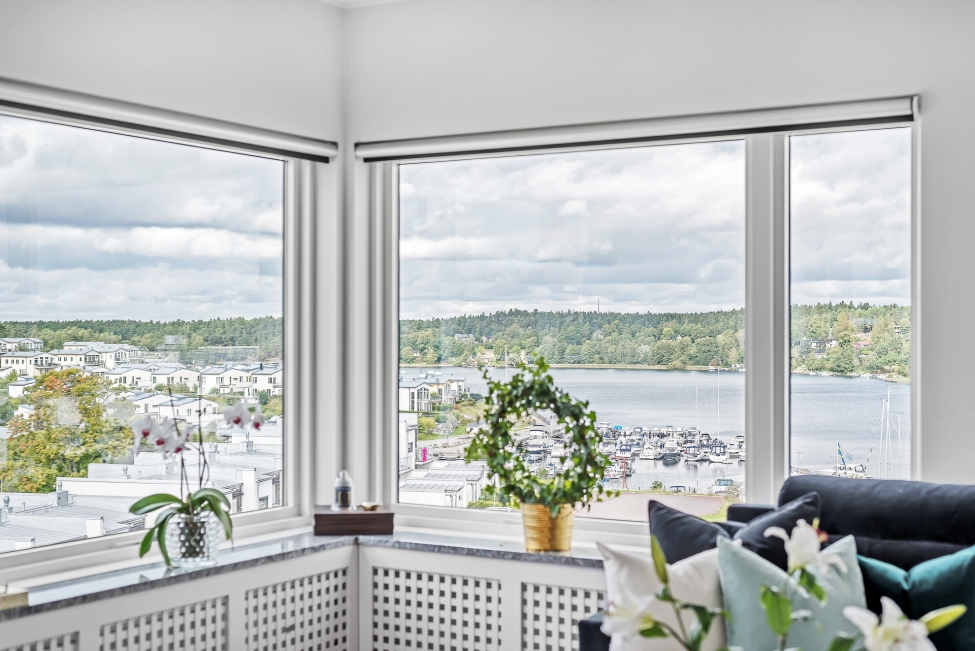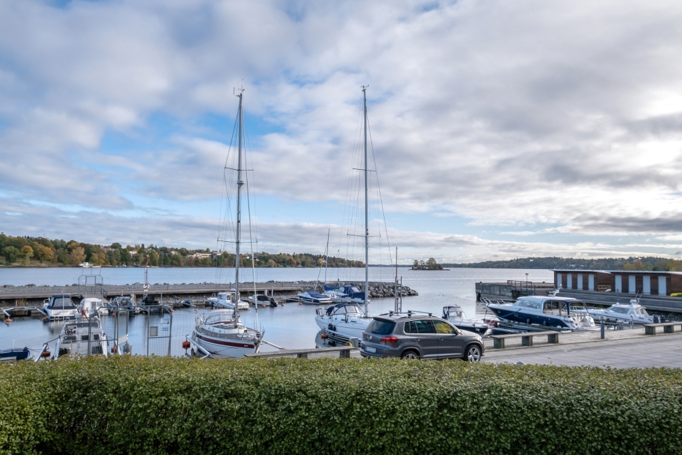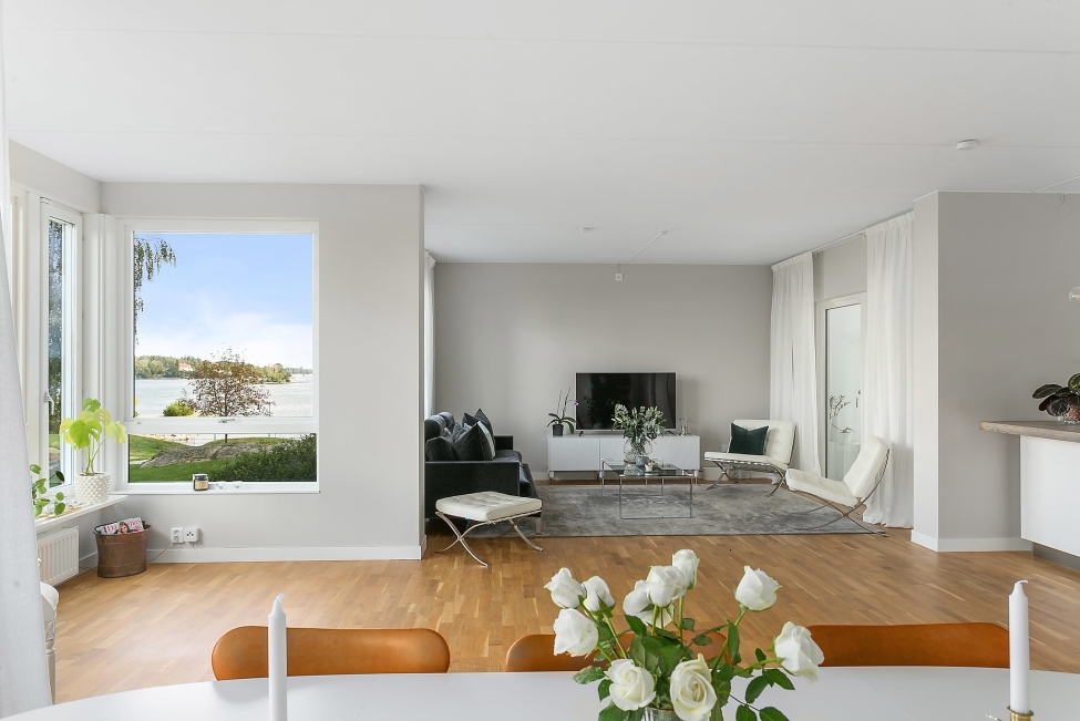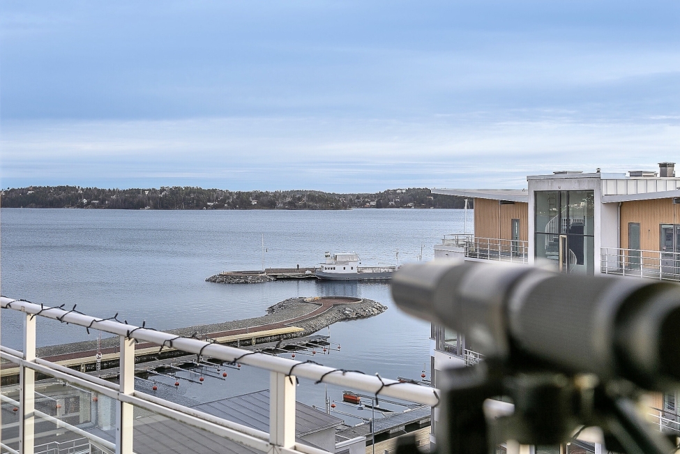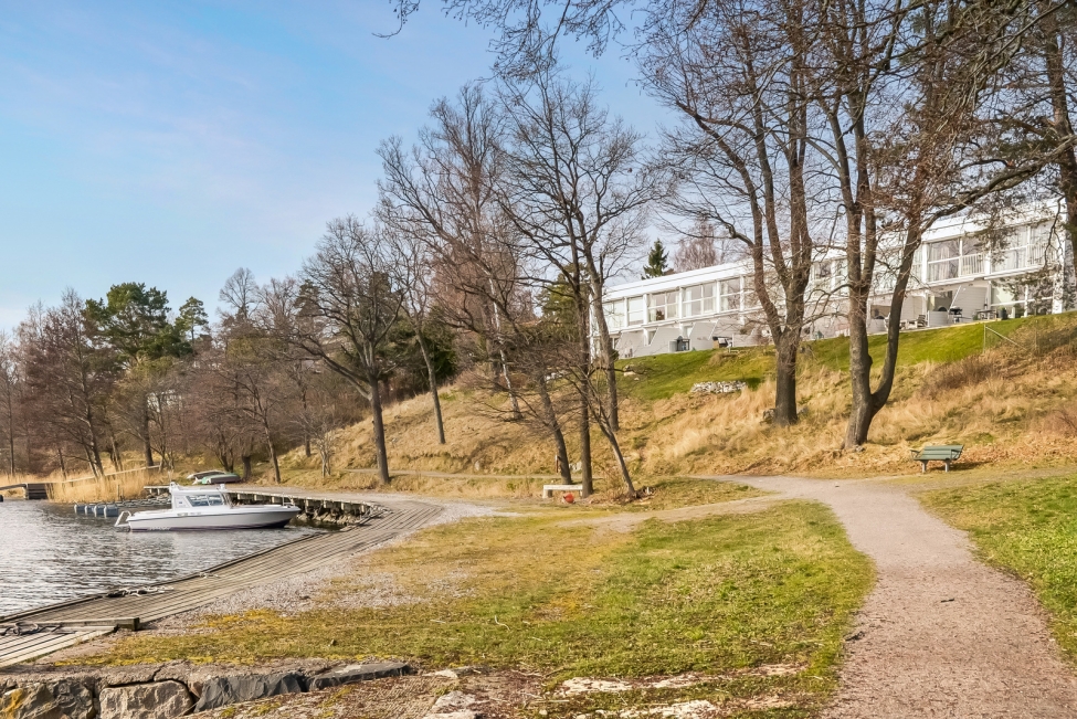 Synnerligen tilltalande lägenhet belägen högt upp i fastighet med bästa tänkbara utsikt över inloppet samt Kyrkviken. Påkostade och smakfulla materialval. Generösa och väldisponerade öppna ytor, stora fönsterpartier samt två härliga balkonger med utsikt över vattnet och den vackra omgivningen. Mycket eftersökt läge på Skepparkroken i Gåshaga Pirar.