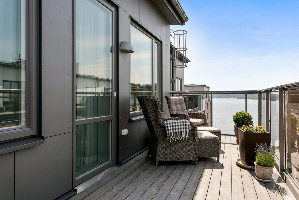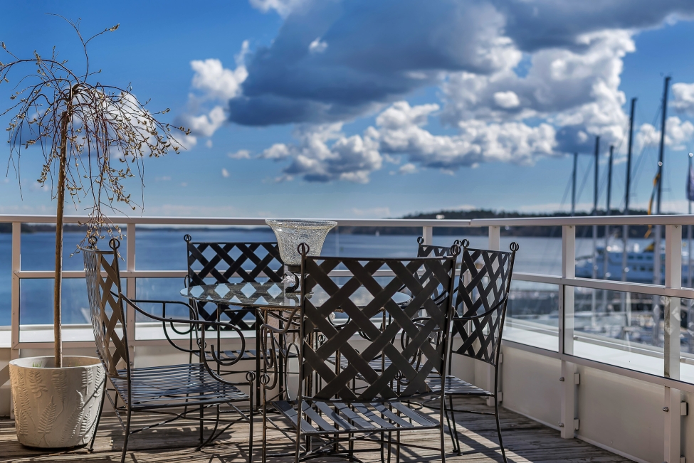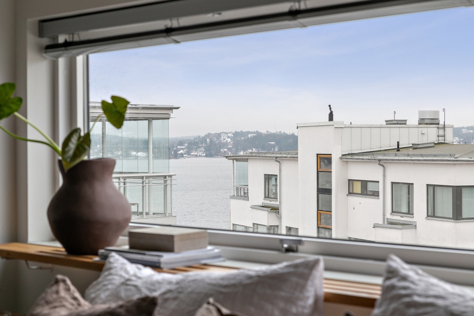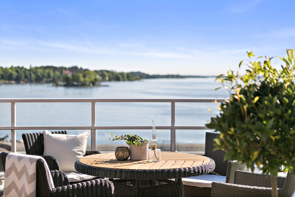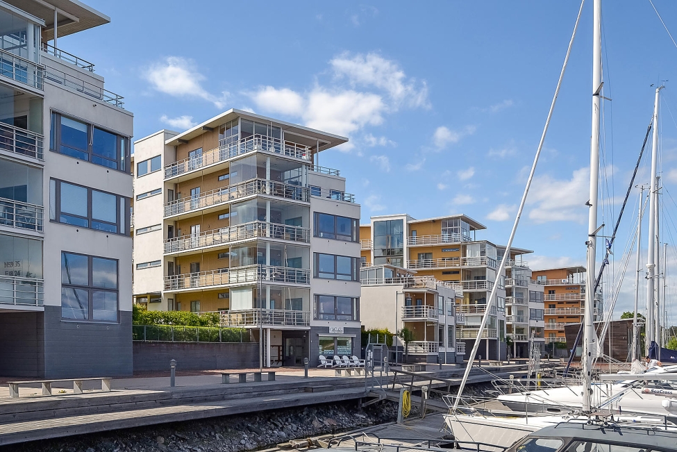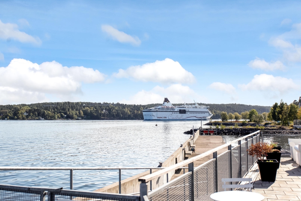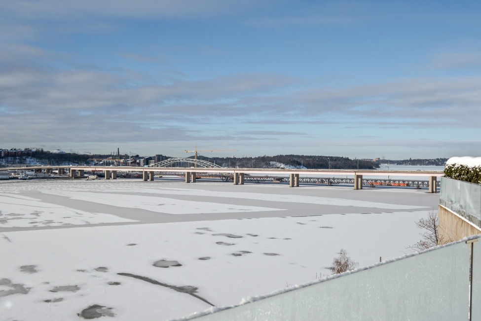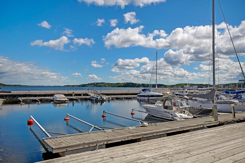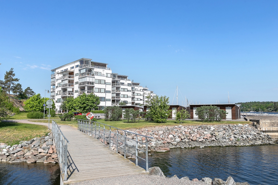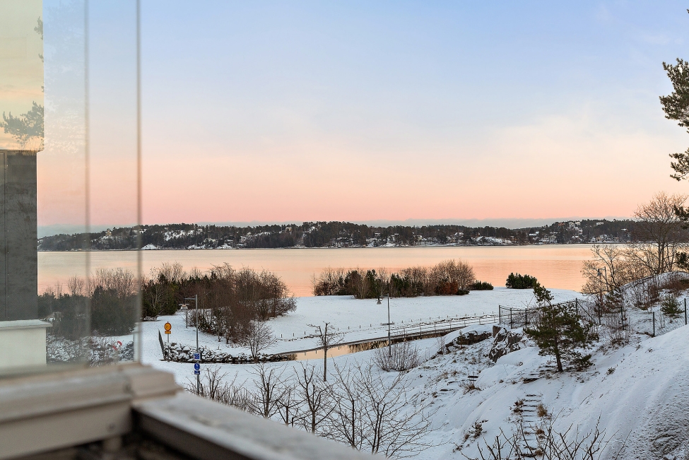Synnerligen tilltalande lägenhet belägen högt upp i fastighet med bästa tänkbara utsikt över inloppet samt Kyrkviken. Påkostade och smakfulla materialval. Generösa och väldisponerade öppna ytor, stora fönsterpartier samt två härliga balkonger med utsikt över vattnet och den vackra omgivningen. Mycket eftersökt läge på Skepparkroken i Gåshaga Pirar.