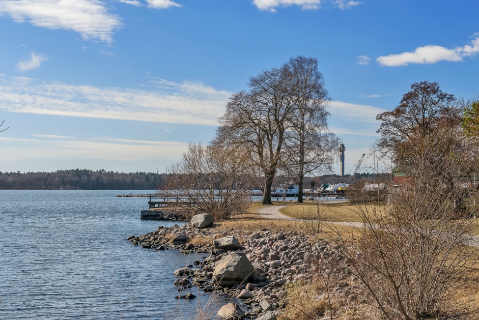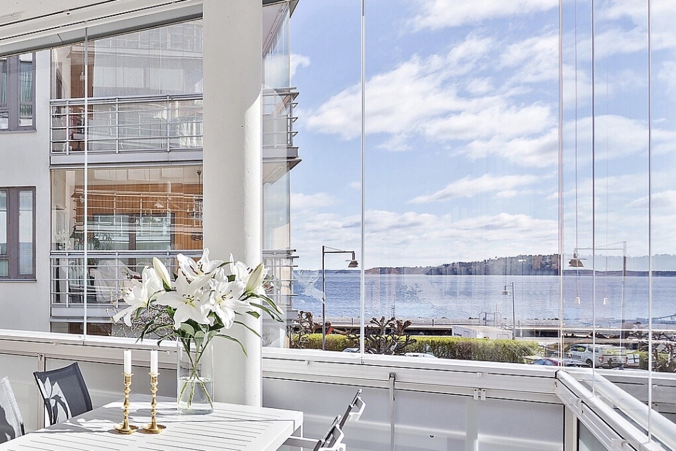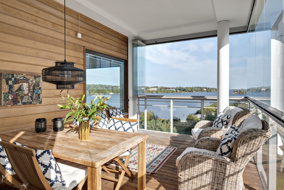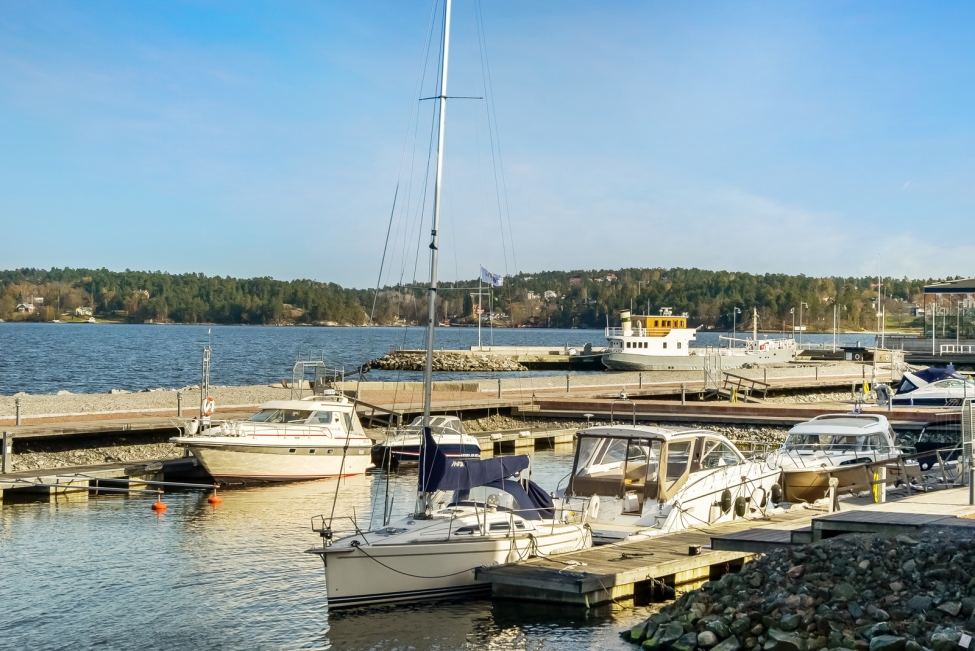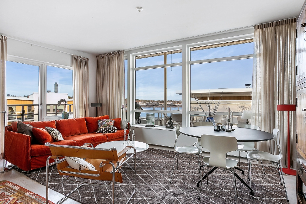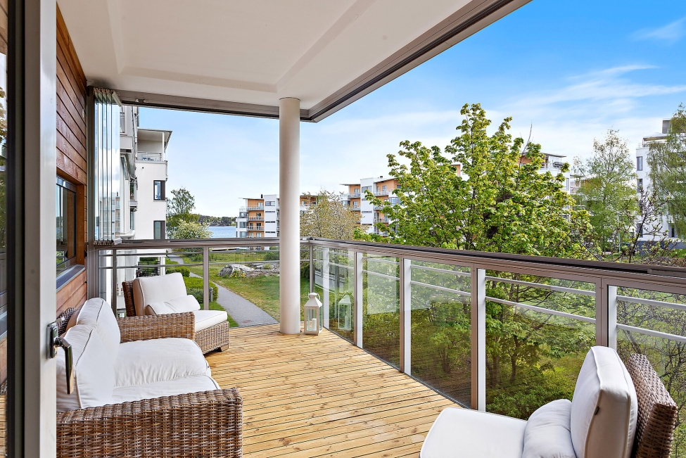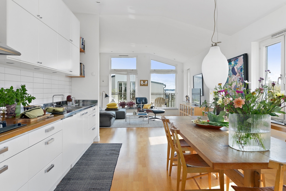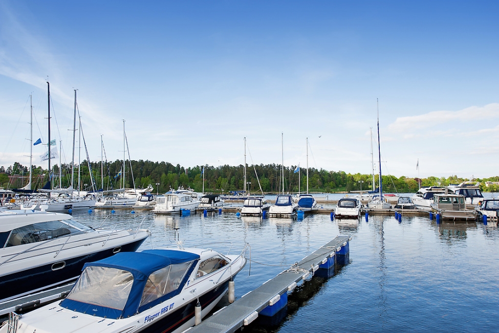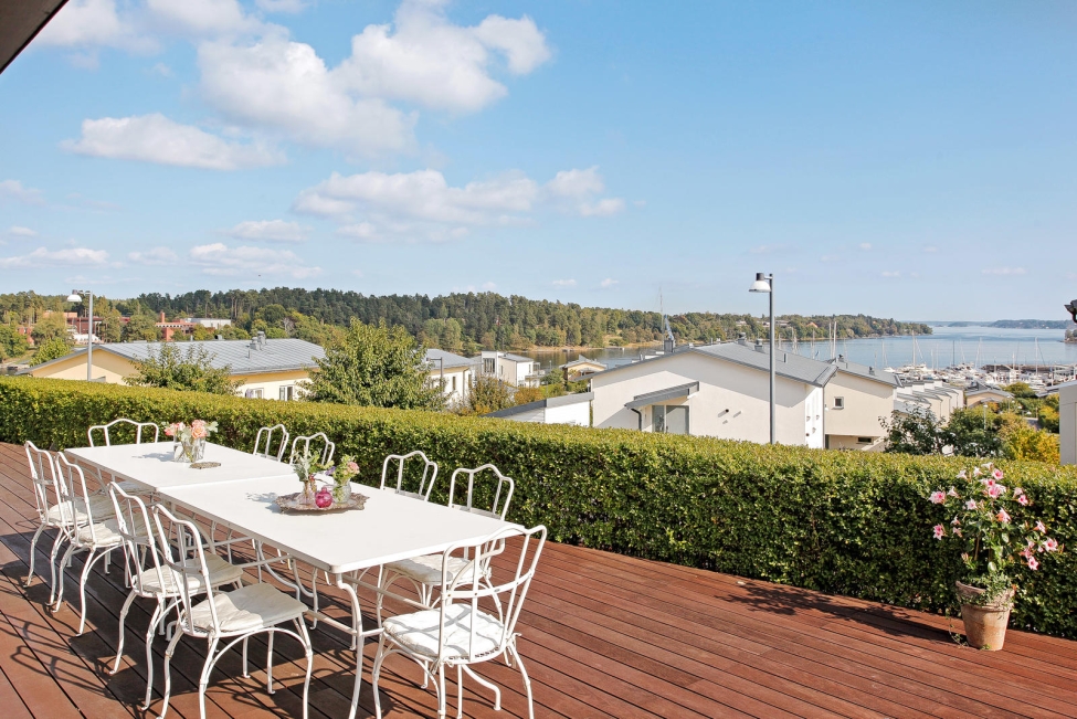 Synnerligen tilltalande lägenhet belägen högt upp i fastighet med bästa tänkbara utsikt över inloppet samt Kyrkviken. Påkostade och smakfulla materialval. Generösa och väldisponerade öppna ytor, stora fönsterpartier samt två härliga balkonger med utsikt över vattnet och den vackra omgivningen. Mycket eftersökt läge på Skepparkroken i Gåshaga Pirar.