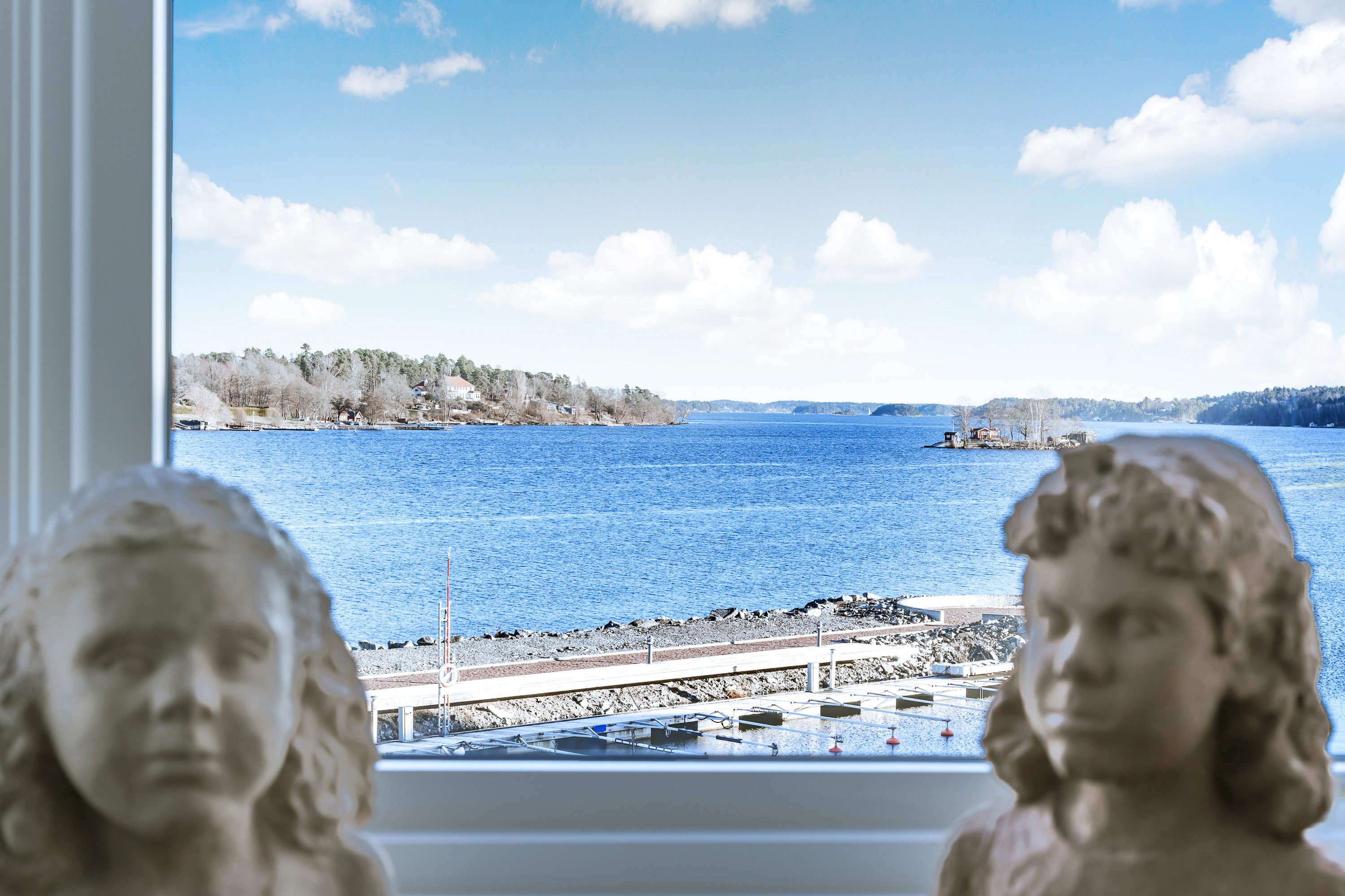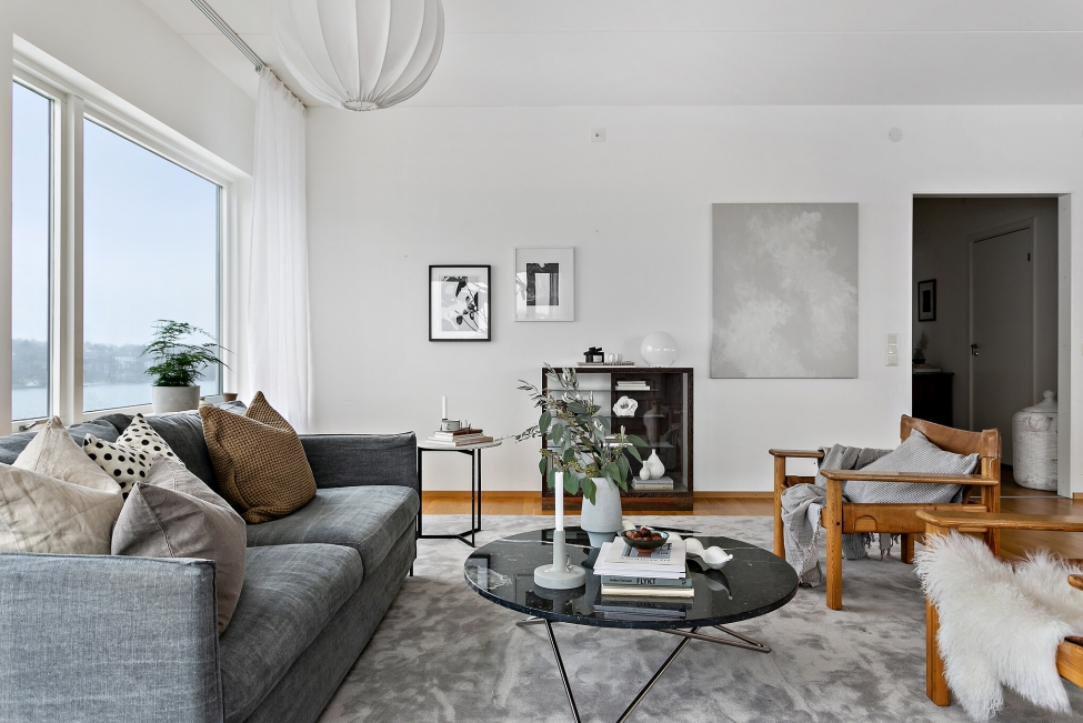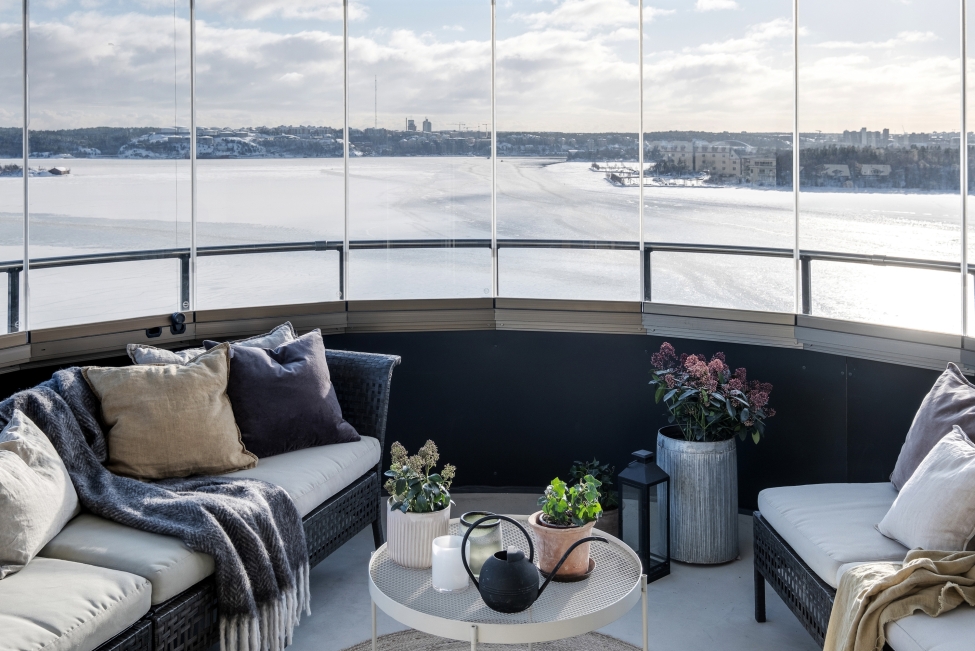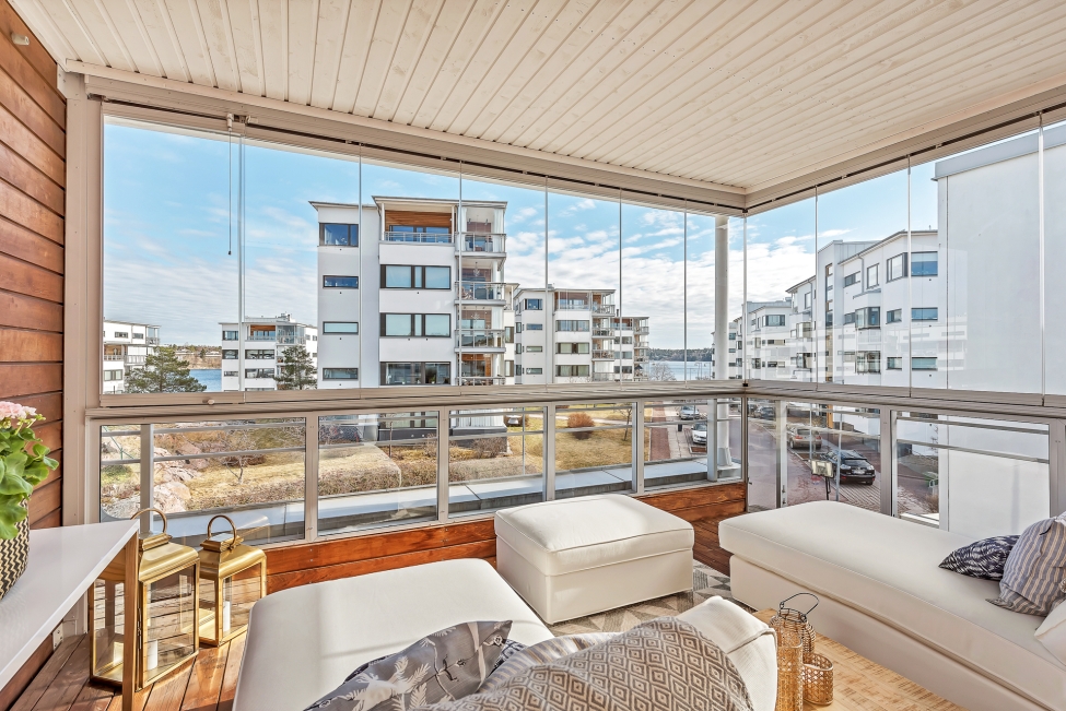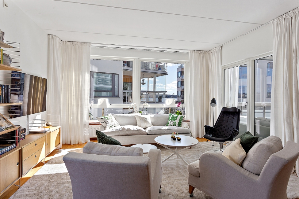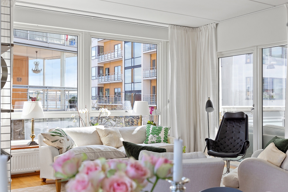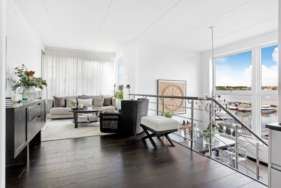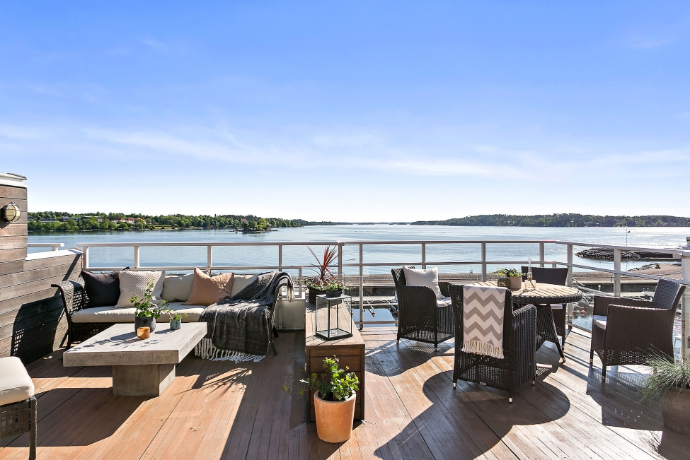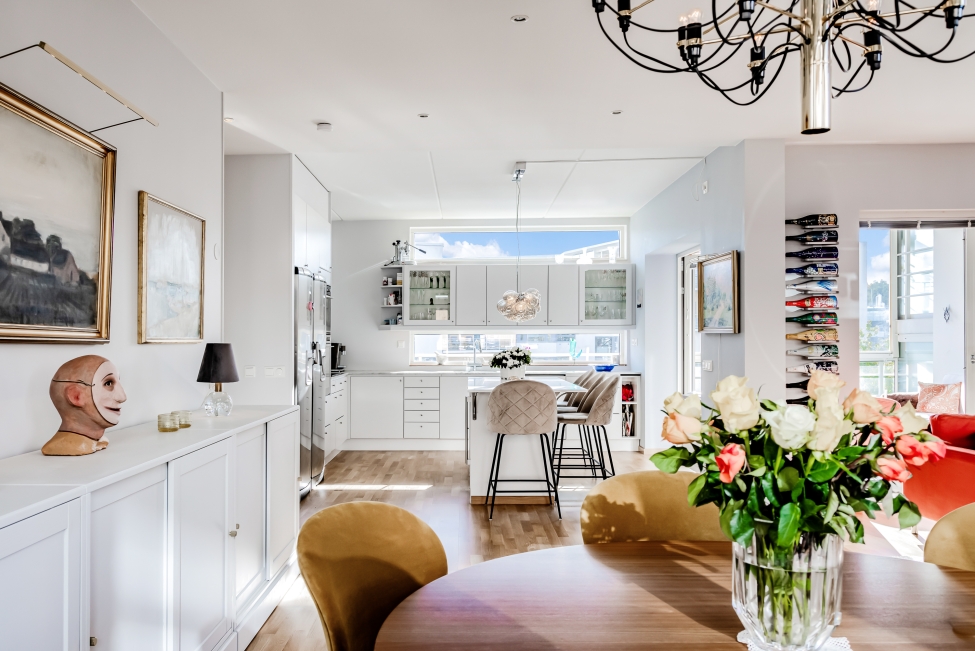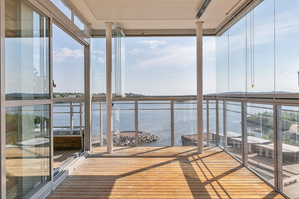 Synnerligen tilltalande lägenhet belägen högt upp i fastighet med bästa tänkbara utsikt över inloppet samt Kyrkviken. Påkostade och smakfulla materialval. Generösa och väldisponerade öppna ytor, stora fönsterpartier samt två härliga balkonger med utsikt över vattnet och den vackra omgivningen. Mycket eftersökt läge på Skepparkroken i Gåshaga Pirar.