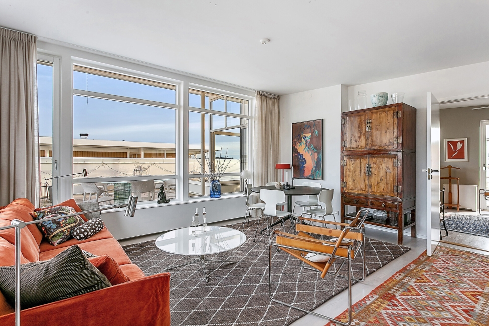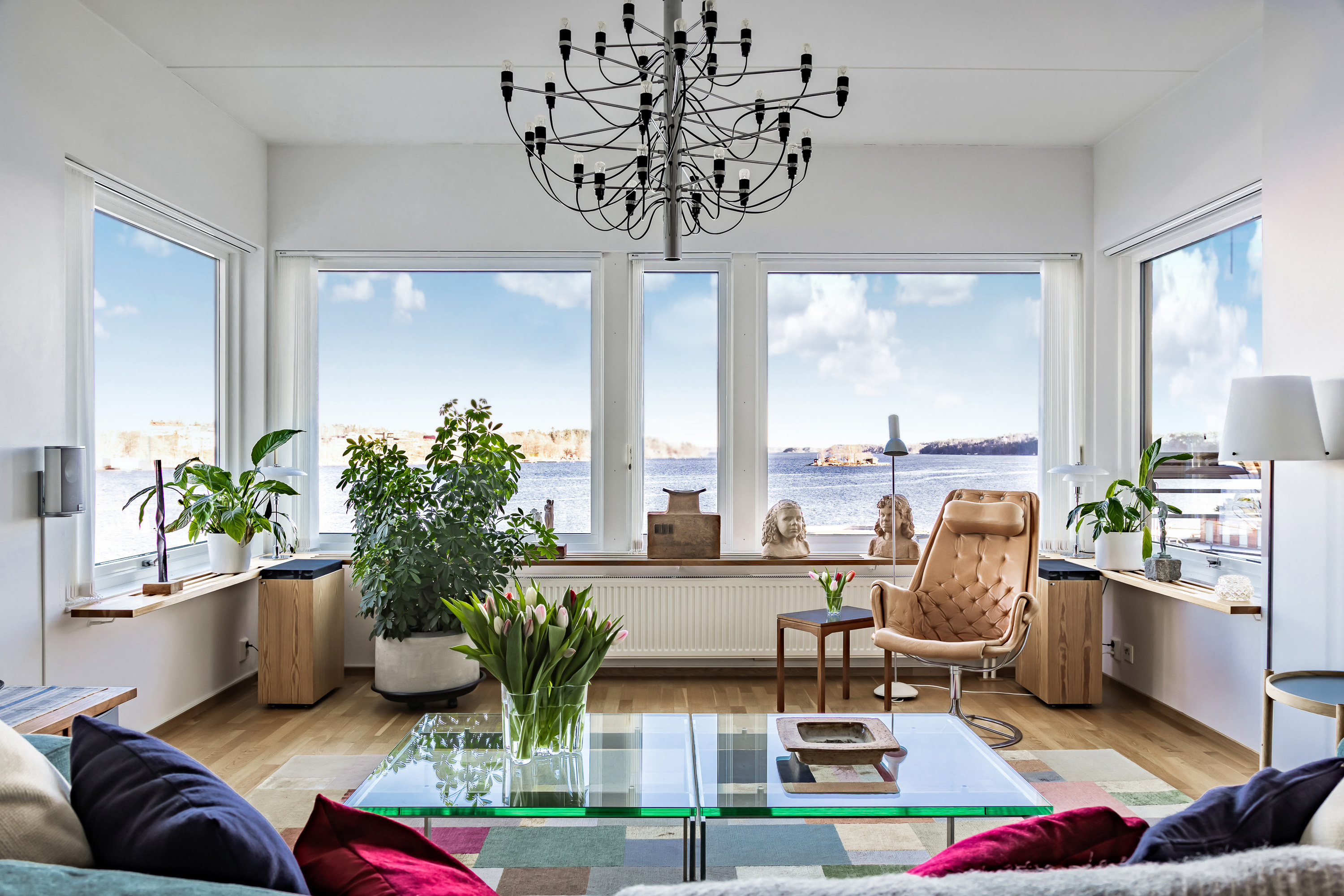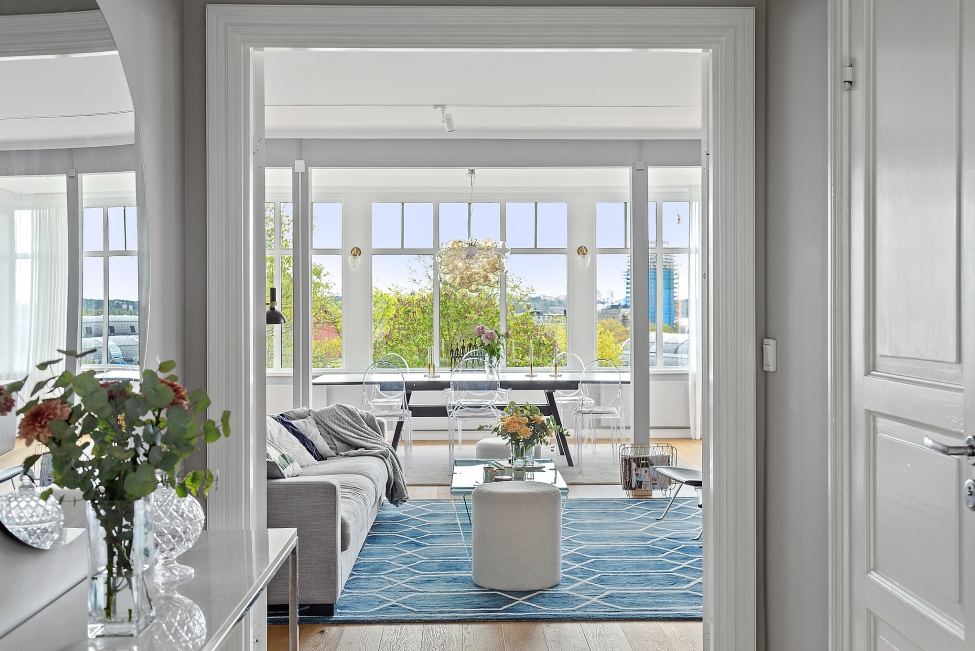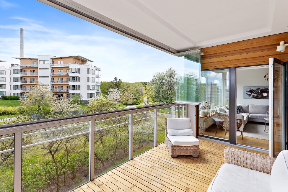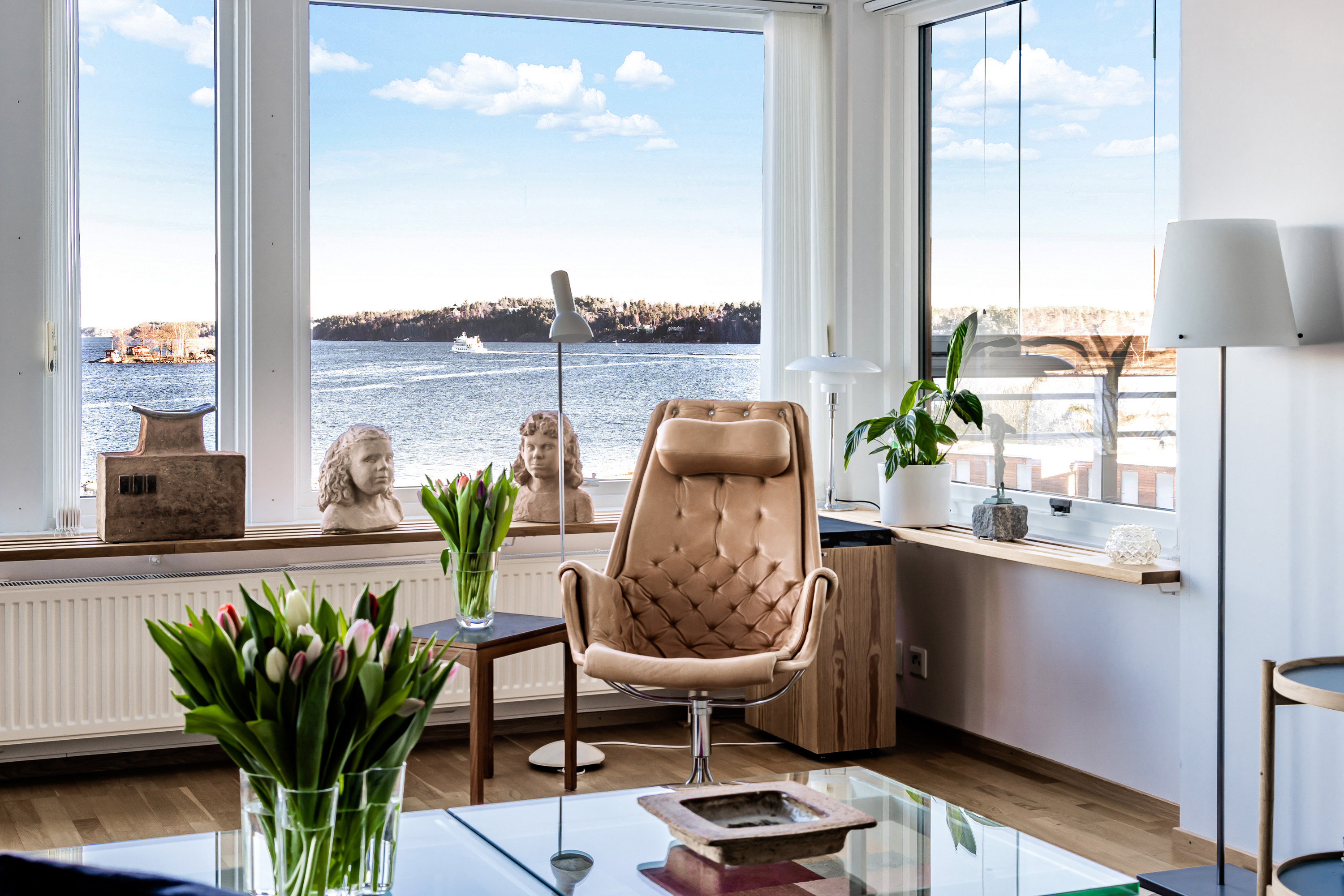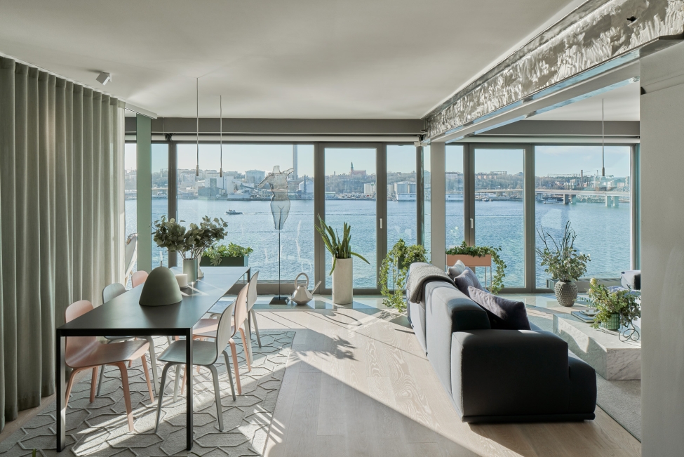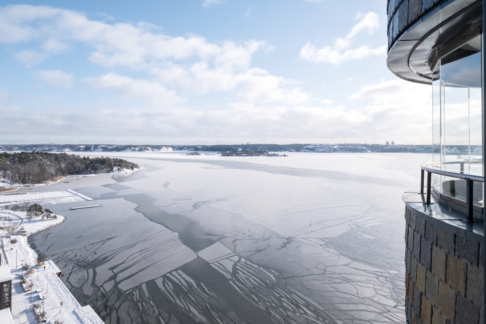 Synnerligen tilltalande lägenhet belägen högt upp i fastighet med bästa tänkbara utsikt över inloppet samt Kyrkviken. Påkostade och smakfulla materialval. Generösa och väldisponerade öppna ytor, stora fönsterpartier samt två härliga balkonger med utsikt över vattnet och den vackra omgivningen. Mycket eftersökt läge på Skepparkroken i Gåshaga Pirar.