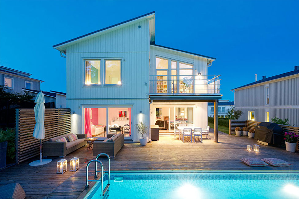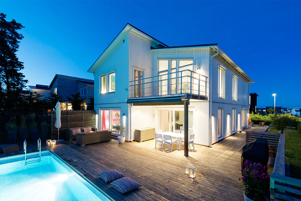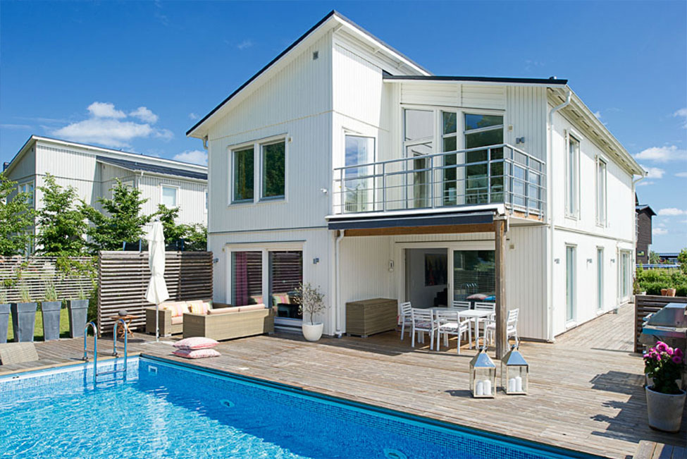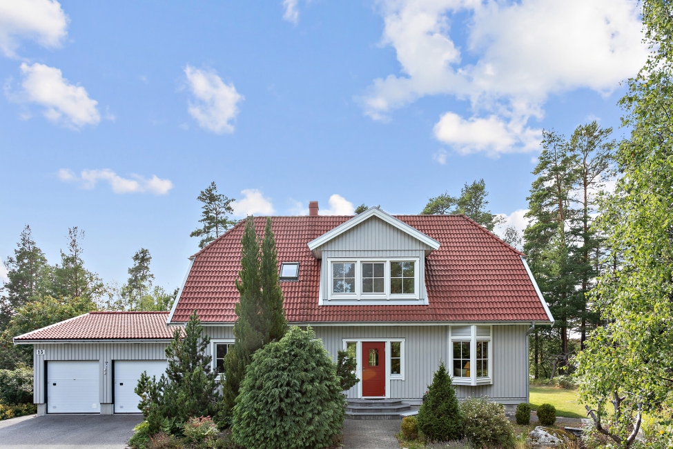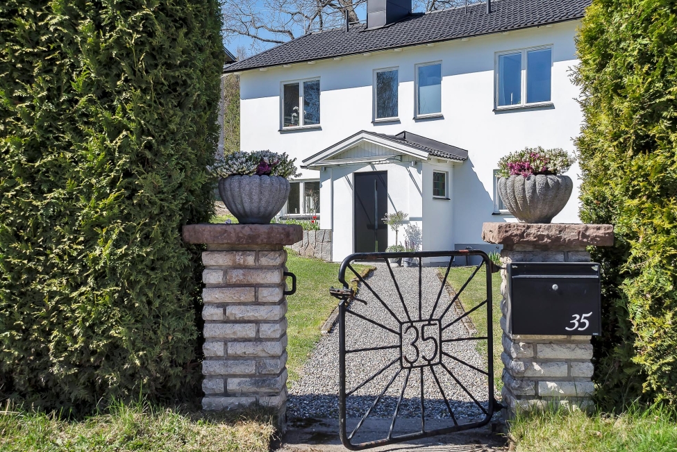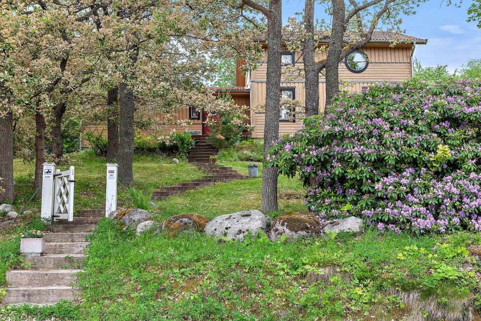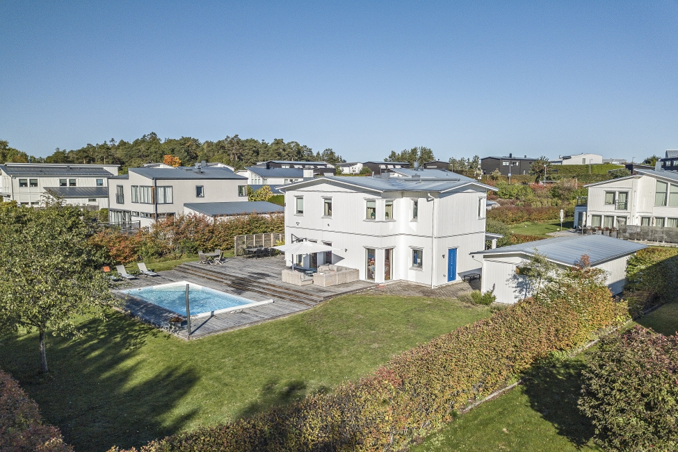Arkitektritad, smakfull och mycket tilltalande tvåplansvilla med fantastiskt ljus, rymd och karaktär. Generösa fönsterpartier samt genomgående stilrena och exklusiva materialval. Vackert välplanerad och grönskande tomt med pool, magnifikt trädäck och soliga uteplatser mot härliga Björkhagen och skogen. Mycket lugnt och eftersökt läge i utkanten av Gåshaga Strand.