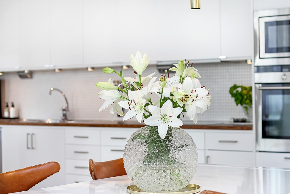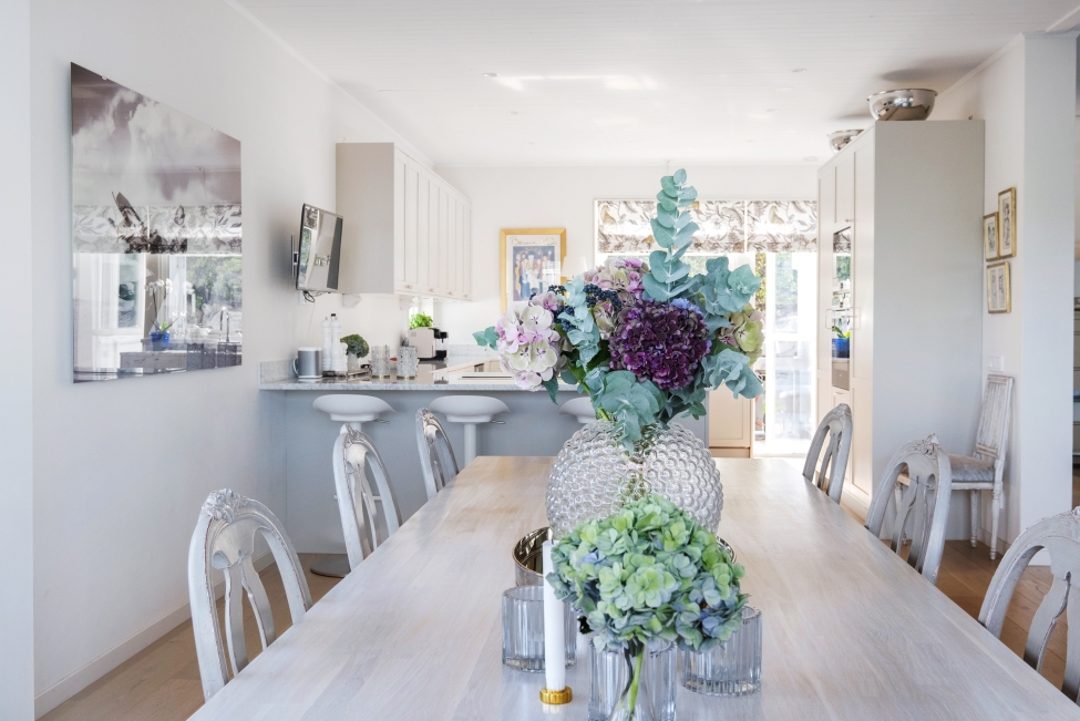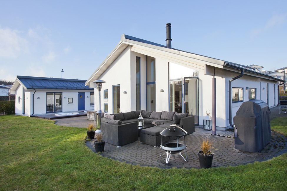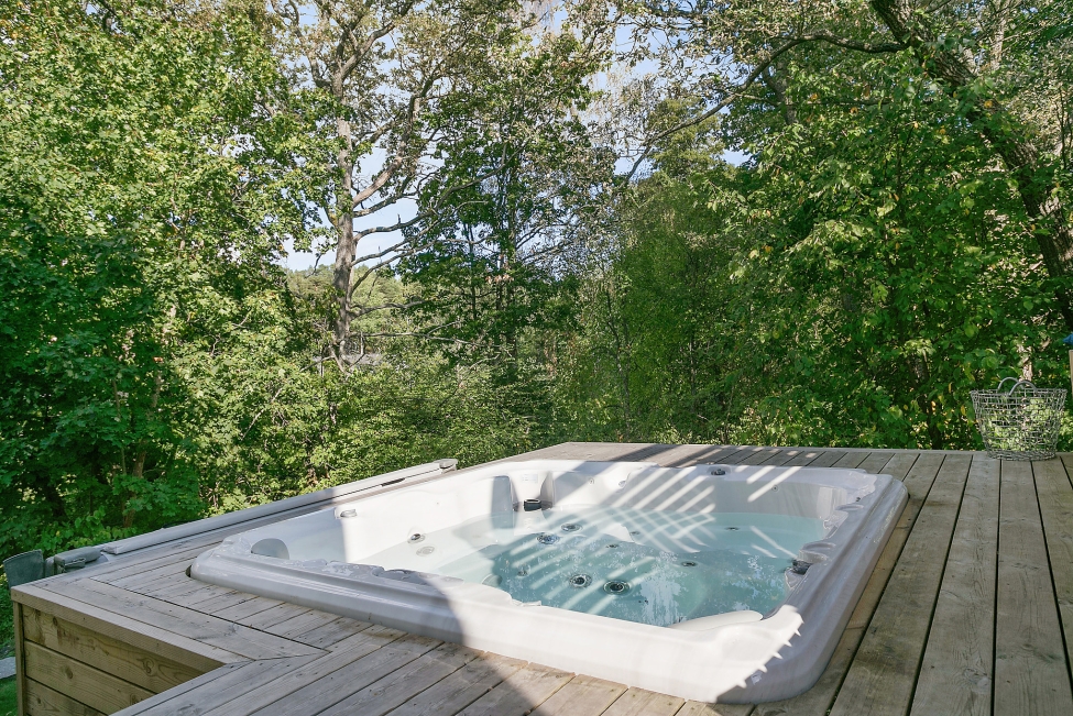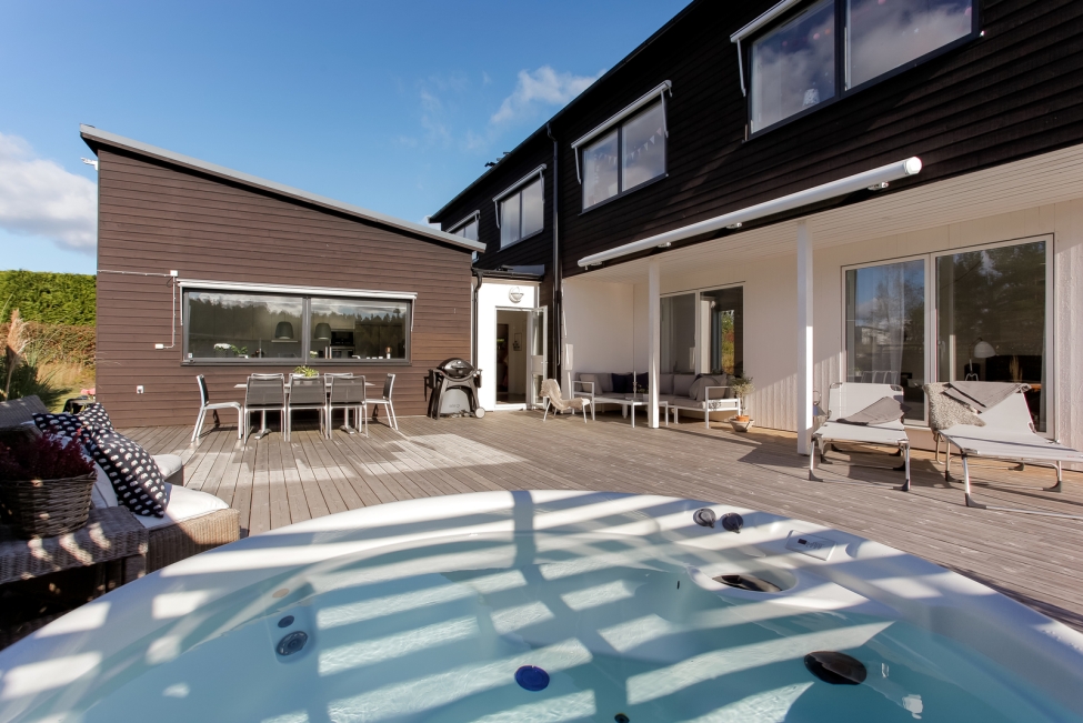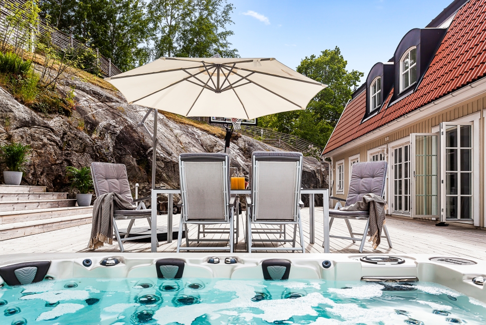 Sjönära läge - Stilrent enplanshus - Ljus & rymd - 5 sovrum - 3 badrum - Stensatta uteplatser - Gästhus - Bastu - Utomhusspa - Carport - Båtplats