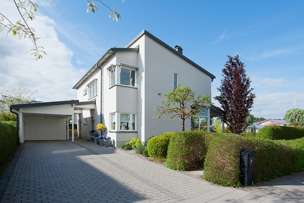 Extraordinärt - Sjönära läge - Havsutsikt - Generös takhöjd - Ljus & rymd - 4 sovrum - 2 badrum - Stensatta uteplatser - Carport - Förråd - Båtplats