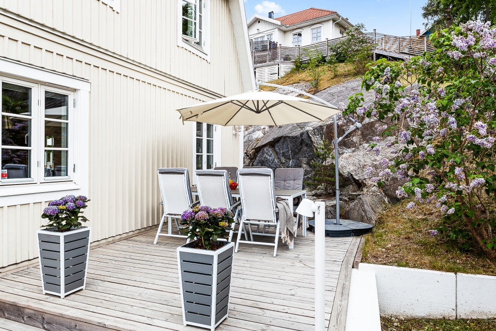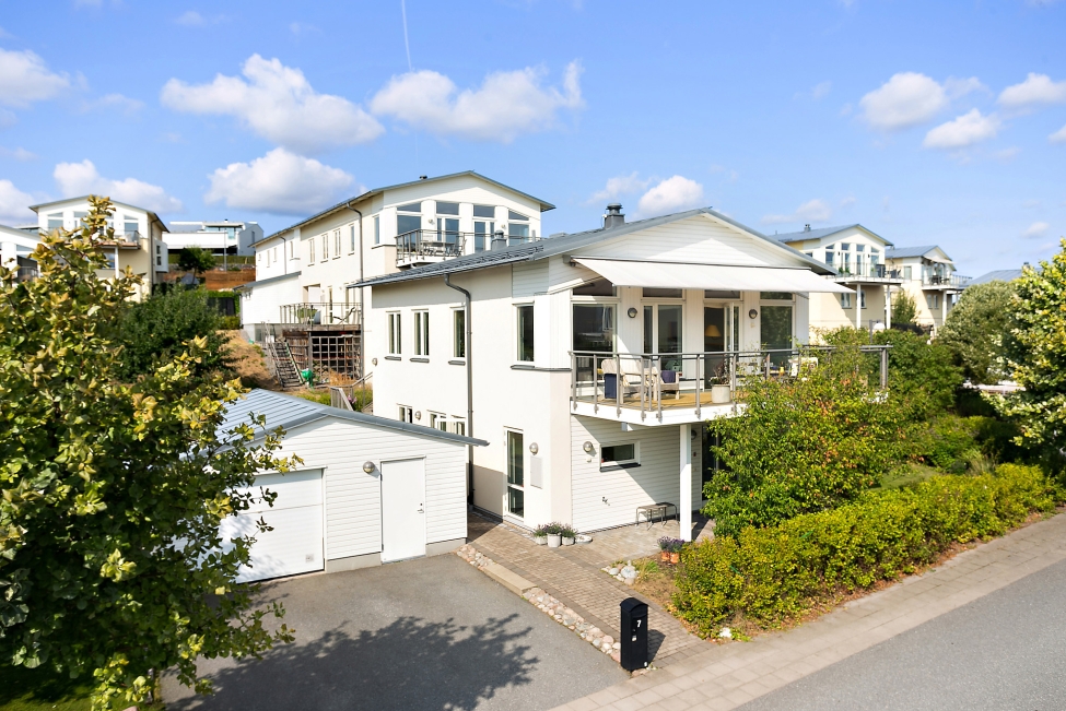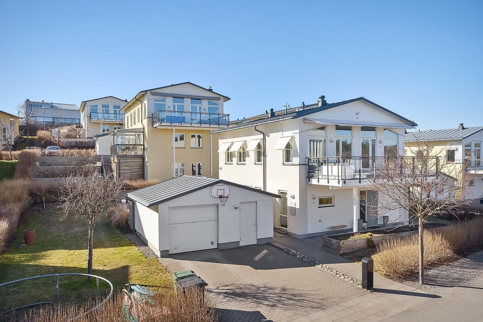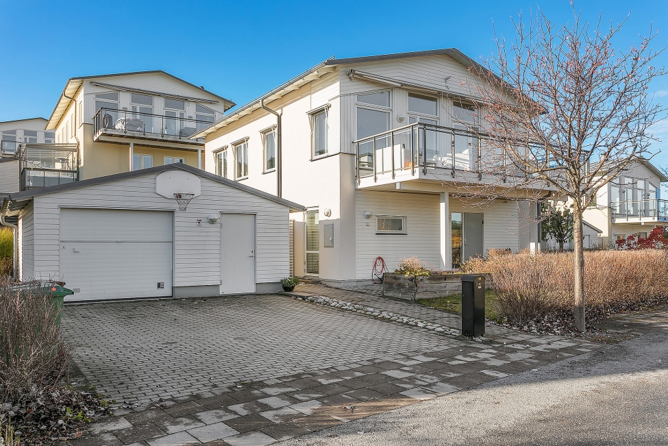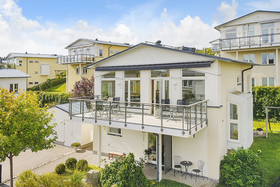 Sjönära läge - Havsutsikt - Generös takhöjd - Ljus & rymd - 4 sovrum - 2 badrum - Gästwc - Härlig balkong - Flertalet uteplatser - Garage - Förråd