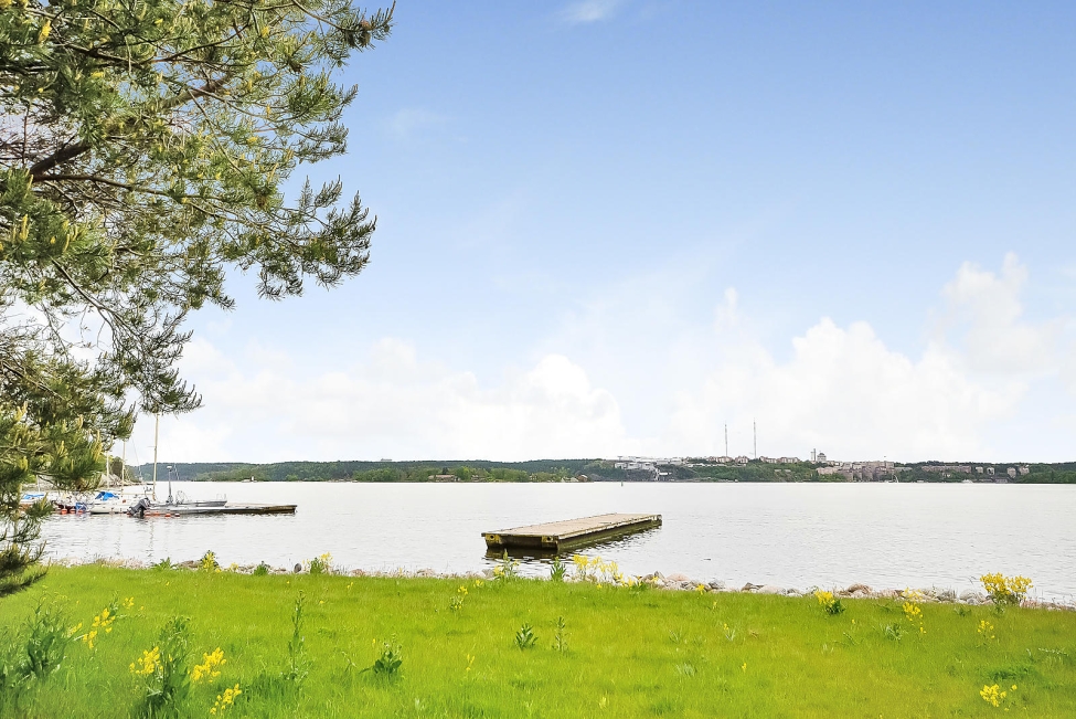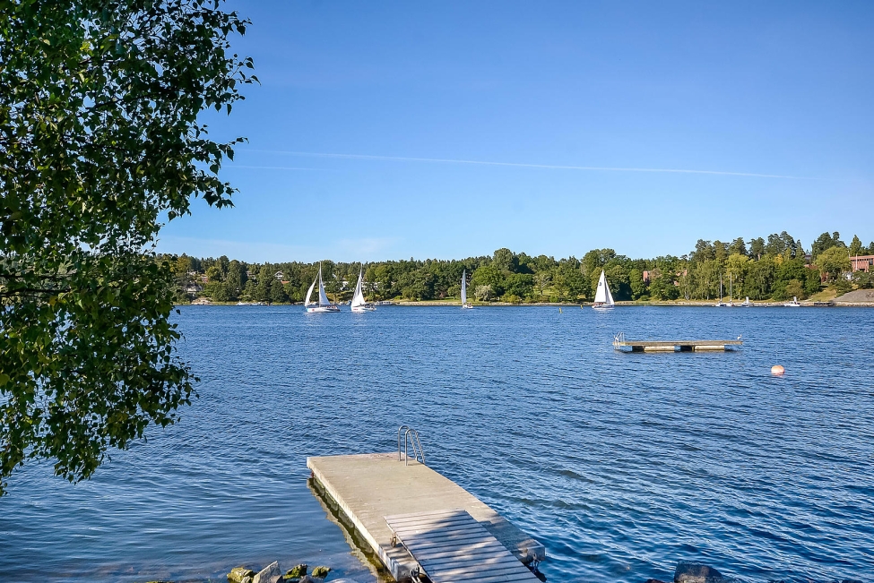 Sjönära läge - Havsutsikt - Generös takhöjd - Ljus & rymd - 4 sovrum - 2 badrum - Stensatta uteplatser - Terrass - Förråd - Möjlighet till båtplats