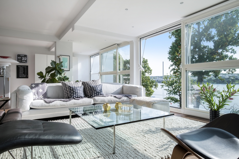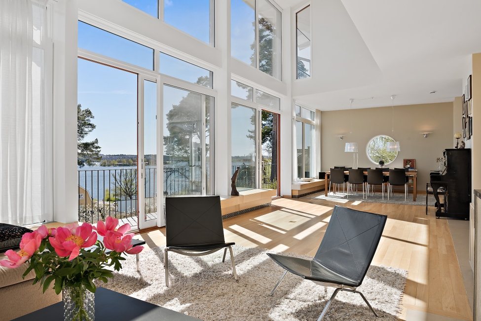 Sjöutsikt - Sjönära läge - Ljus & rymd - Väldisponerade ytor - Generös terrass - Flertalet uteplatser - Vacker omgivning - Modern & stilren fastighet