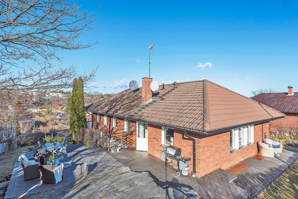 Välplanerad och optimalt belägen enplansvilla med souterräng. Högt och fritt läge på lugna Norrkroken i Brevik. Sjöglimt från den stora längsgående balkongen som vetter mot skogen och den grönskande baksidan. Stensatta gångar samt insynsskyddade uteplatser med både morgon- och kvällssol. Barnvänlig tomt attraktivt belägen med tyst och lugnt läge på återvändsgata utan genomfartstrafik.