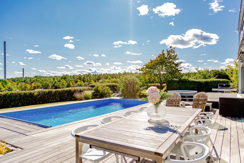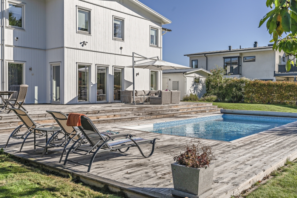 Sjönära läge - Sjösutsikt - Ljus & rymd - Generösa ytor - 5 sovrum - 2 badrum - Gästwc - Härlig terrass - Flertalet uteplatser - Pool - Garage