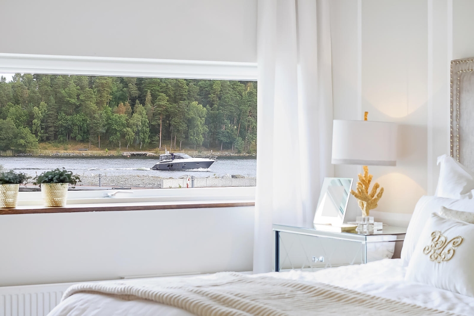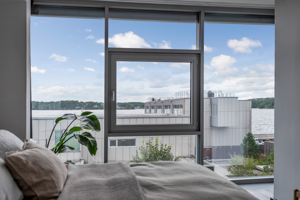 Havsutsikt - Stilrena & exklusiva materialval - Generös takhöjd - Ljus & rymd - 3 sovrum - 2 badrum - WC - Flertalet uteplatser - Båtplats - Sjöbod