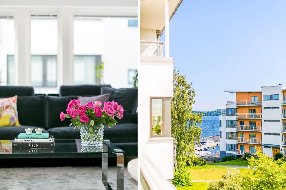 Sjönära läge - Sjösutsikt - Generös takhöjd - Ljus & rymd - 3-4 sovrum - 2 badrum - Gästwc - Härlig balkong - Flertalet uteplatser - Garage - Förråd
